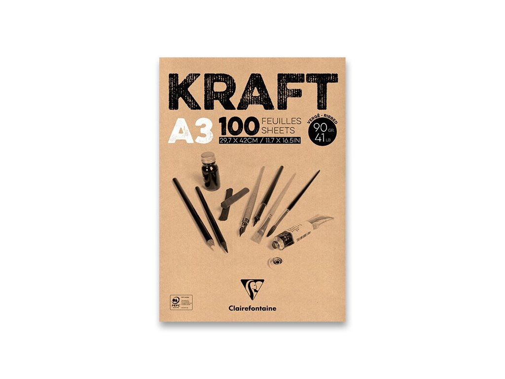 Blok Clairefontaine Brown Kraft - A3, 100 listů, 90 g