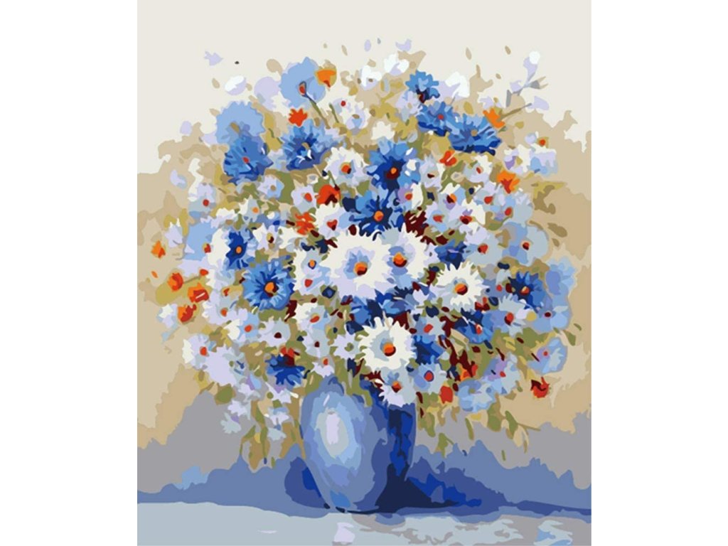 Diamantový obrázek - Modrá váza s květinami 30x40 cm