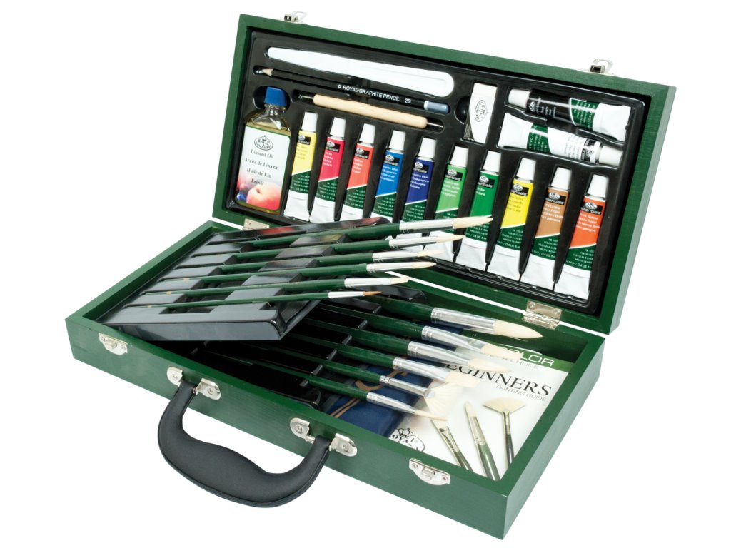 Luxusní sada na malování v dřevěném kufříku - olejové barvy