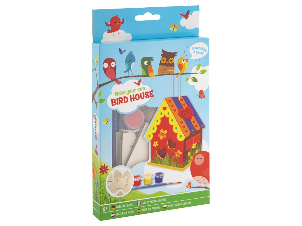 Ptačí budku sestavte podle obrázkového návod. Ozdobte a pomalujte a můžete pověsit a čekat, který ptáček přiletí jako první.