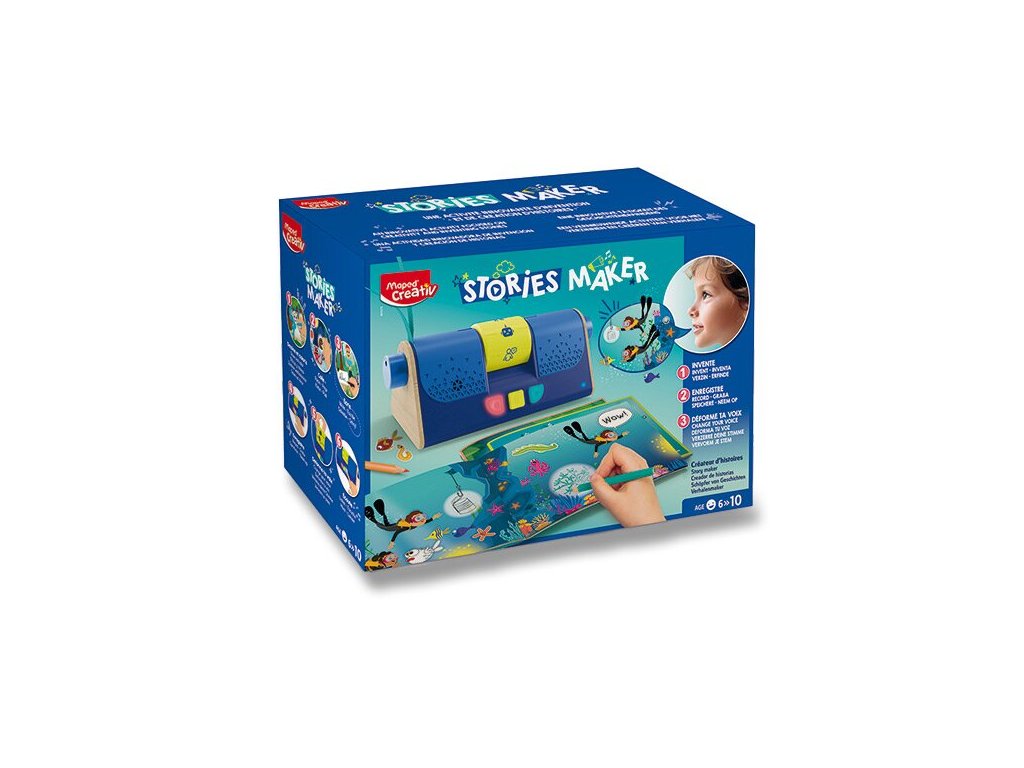 Sada Maped Creativ Stories Maker umožňuje dětem rozvíjet jejich představivost zábavnou tvorbou příběhů. Sada obsahuje 3 sešity, které lze přizpůsobit vybarvením, psaním a pomocí samolepek. Děti pak mohou nahrát svůj příběh a pomocí 7 zkreslovačů hlasu ztělesňovat různé postavy. S 80 minutami nahrávacího času, který je k dispozici, se děti mohou mnohokrát nahrát a pak se znovu a znovu poslouchat.