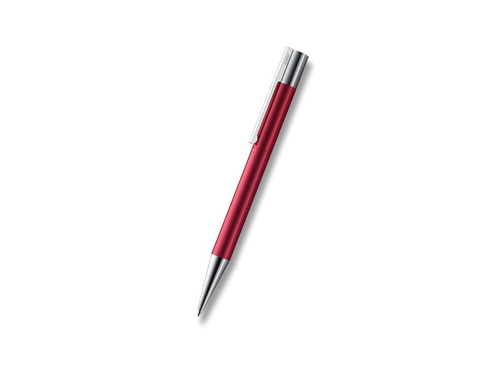 Kuličkové pero Lamy Scala v provedení Pianored má tělo z nerezové oceli v kombinaci s lesklým červeně lakovaným povrchem v kombinaci s lesklými pochromovanými doplňky.