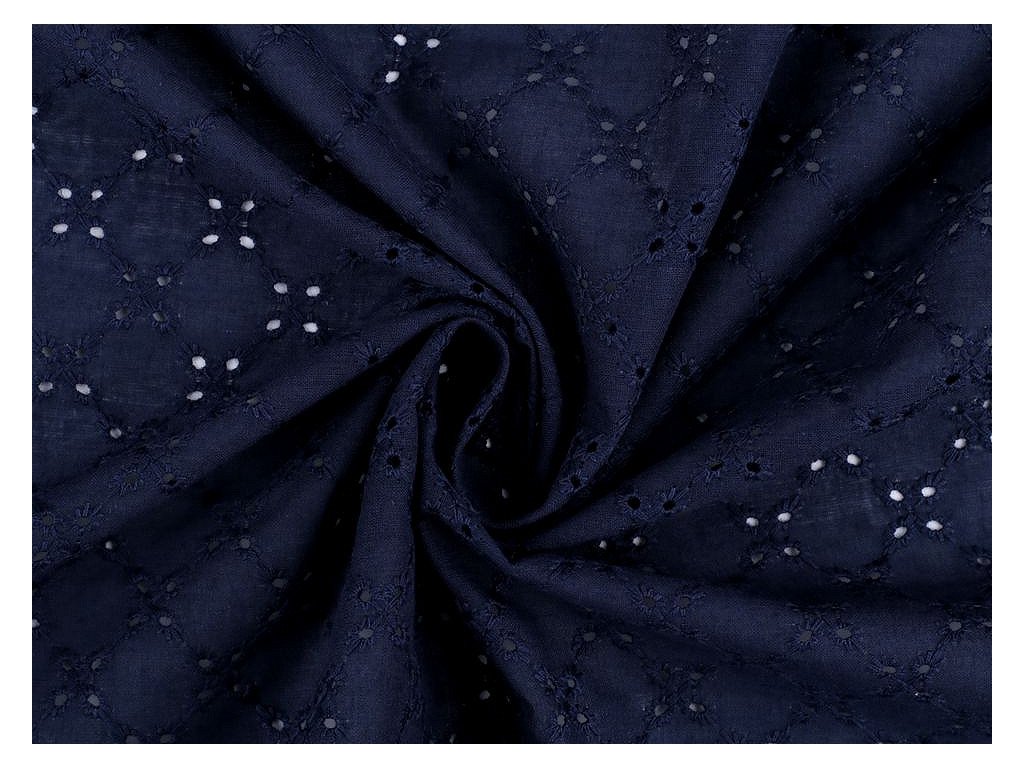Bavlněnou madeiru zdobí dírkovaná výšivka s květy. Látka je jemně průsvitná, lehká a vzdušná. Madeira je vhodná na šití letních šatů, halenek, sukní, dívčích šatiček apod. Využijete ji i na ušití dekorací - polštářů, ubrusů, záclonek, závěsů apod.