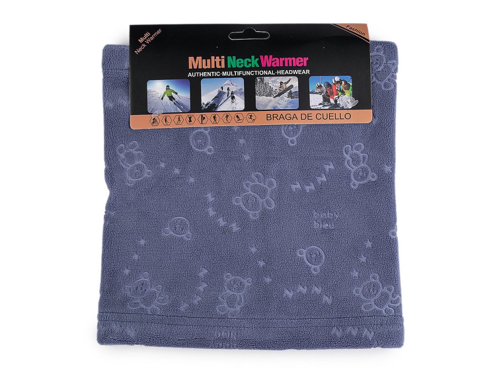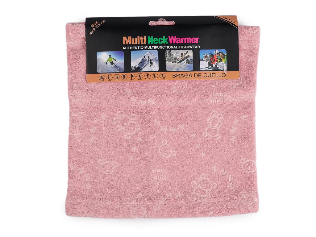 Dětský fleecový nákrčník výborně chrání před chladem, je ozdobený motivem medvídků. Je ušitý z teplého, příjemně měkkého mikroplyše, který zajišťuje maximální pohodlí a příjemný pocit při nošení. Je vhodný k bundě, mikině apod. místo roláku nebo šály. Přizpůsobí se každému dítěti, je praktický na sportovní aktivity v chladném počasí, jako je lyžování, pouštění draků, běhání nebo turistika.