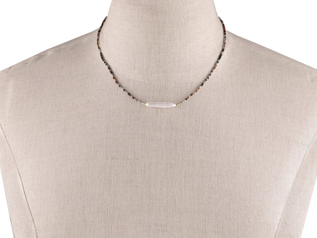 Elegantní náhrdelník je ručně vyrobený z jemných korálků japonského rokajlu, který je známý svou precizností a kvalitou. Uprostřed je ozdobený nádhernou podlouhlou říční perlou. Hodí se ke slavnostním příležitostem i na běžné nošení, skvěle podtrhne i business styl oblékání. Dokáže zjemnit a doladit jakýkoliv outfit, od formálního oblečení po neformální. Náhrdelník potěší každou ženu, je dárkem, se kterým nešlápnete vedle.