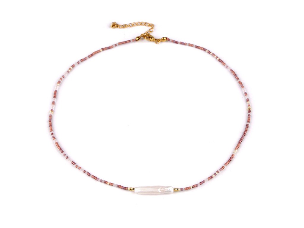 Náhrdelník z japonského rokajlu s říční perlou