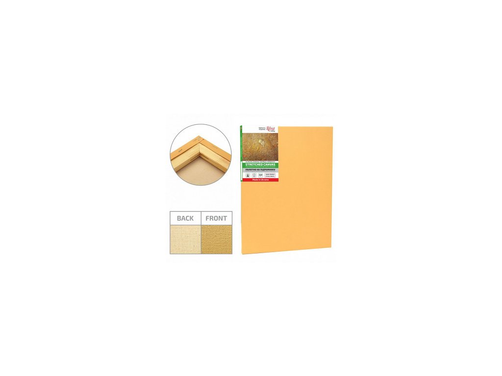 Napnuté malířské plátno ze 100% bavlny s jemným akrylovým šepsem, ten je tónovaný do béžového odstínu. Výrobce Rosa připravuje plátno dle tradičních metod - neprve nanese 3 vrstvy základu a poté 4 vrstvy šepsu - vše probíhá ručně. Díky tomu je plátno pevné a vydrží kvalitně napnuté opravdu dlouhou dobu.