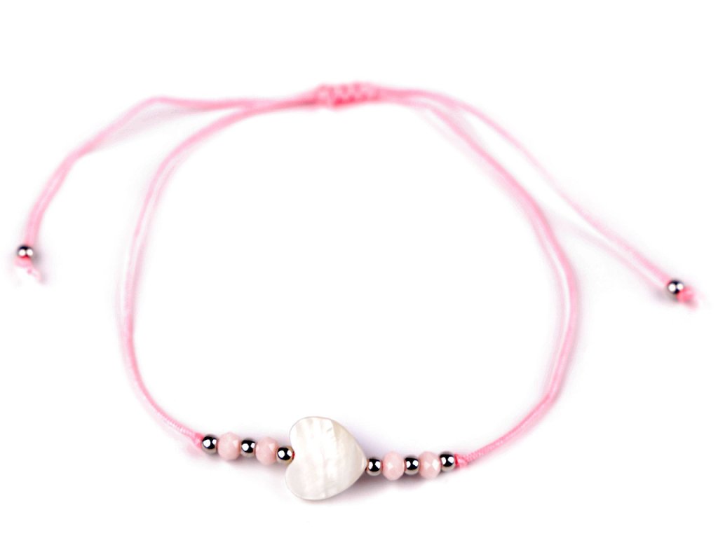 Náramek shamballa perleťové srdce