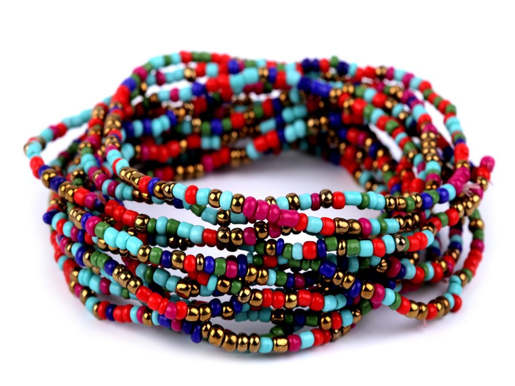 Sadu pružných rokajlových náramků můžete nosit celou najednou nebo můžete náramky rozdělit a použít je samostatně. Díky pružence se dobře navlékají na ruku.