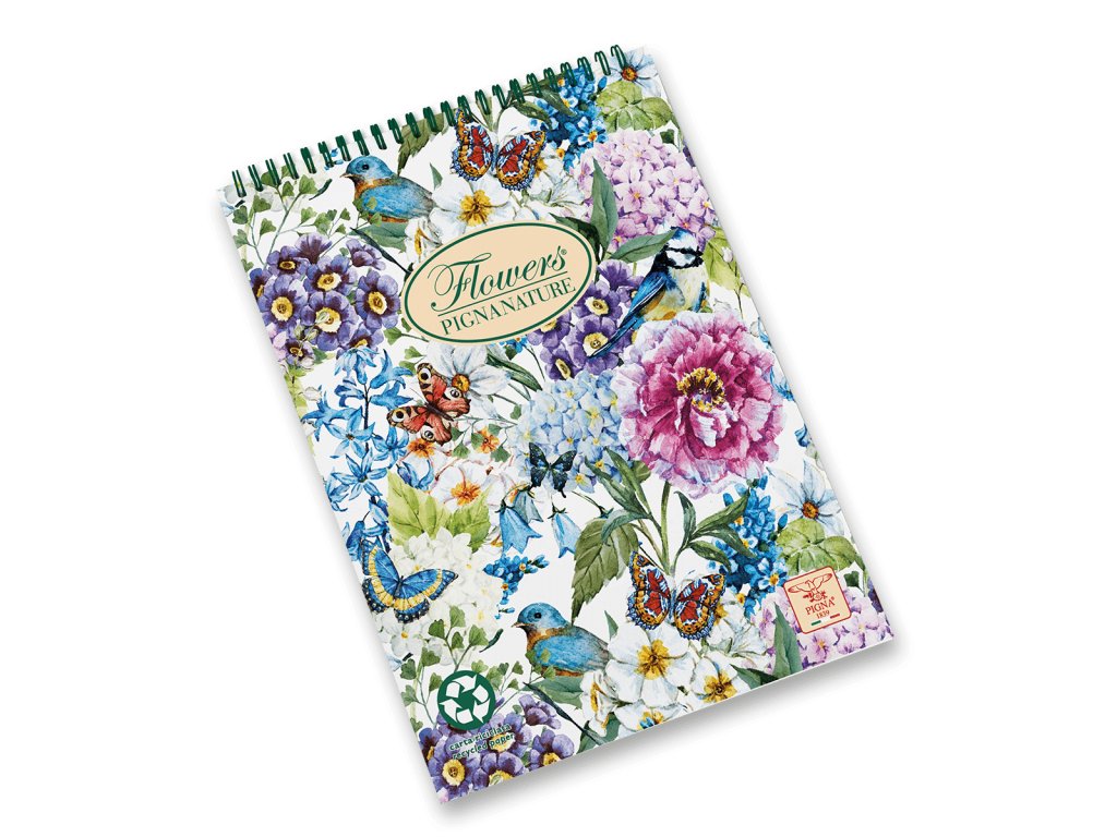 Kroužkový blok Pigna Nature Flowers - A5, čtverečkovaný, 50 listů, mix motivů