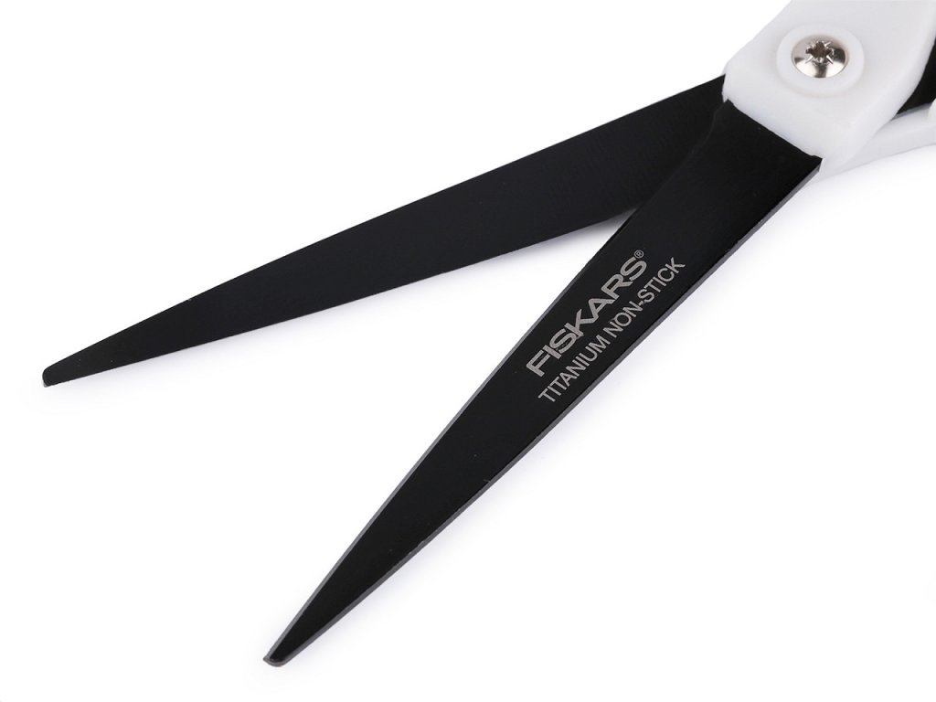 Univerzální titanové nůžky Fiskars vydrží déle ostré. Jejich čepele jsou 3x tvrdší než čepele běžných nůžek. Mají ergonomicky tvarované rukojeti s povrchem Softgrip® pro pohodlné držení. Nepřilnavá vrstva na čepelích zabraňuje většině lepidel, jako mají lepicí pásky či samolepicí štítky, aby na nich ulpívaly. Snadno a rychle se čistí.