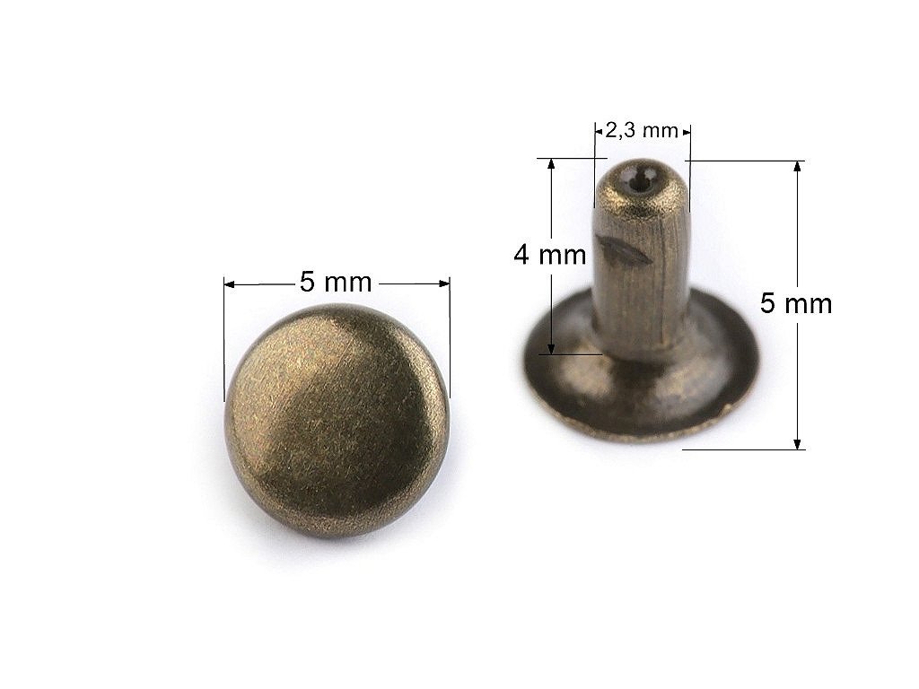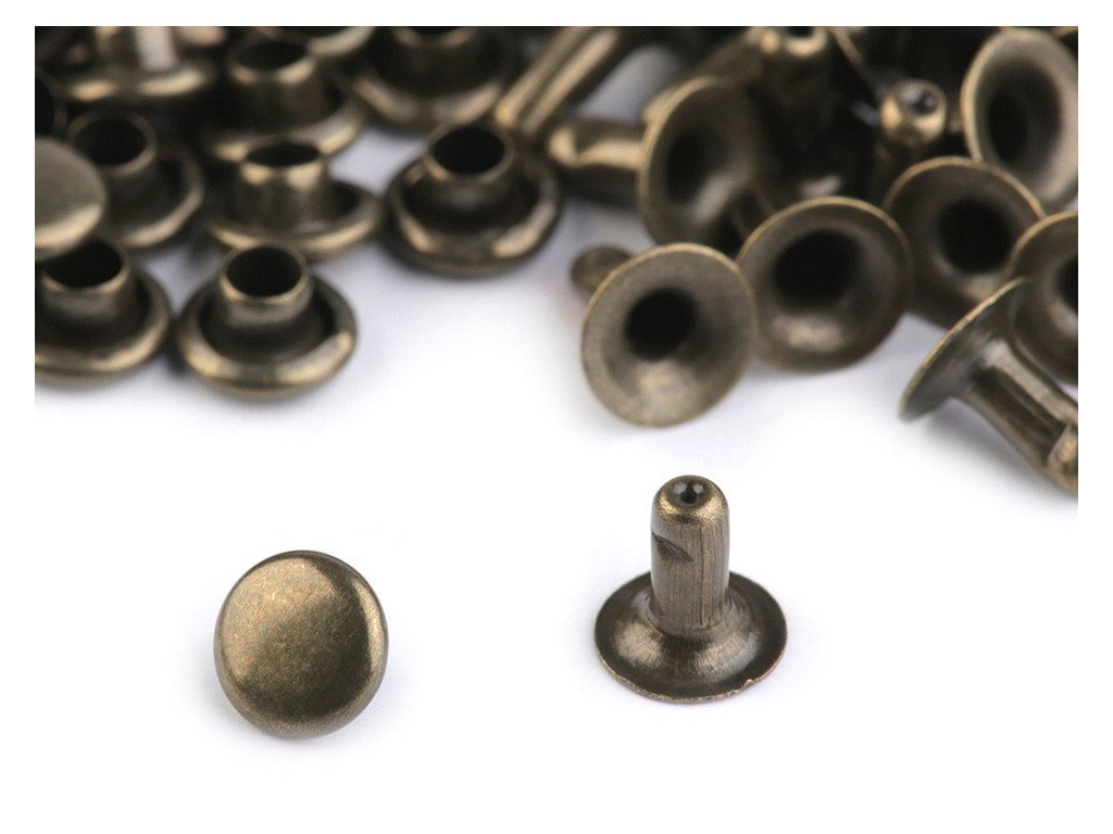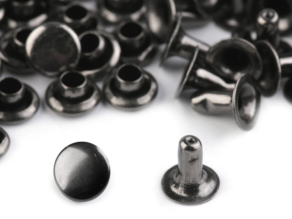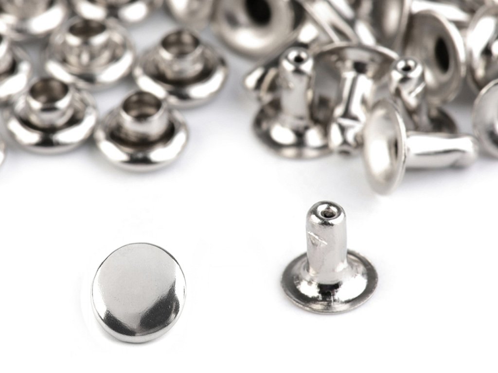 Návod k použití: Jednu část nýtu provlečete materiálem a spojíte druhou částí.