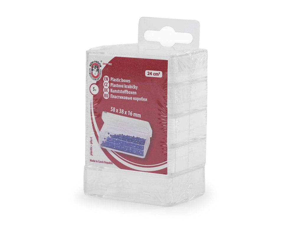 Praktickou plastovou krabičku můžete použít na uskladnění drobných kreativních potřeb, např. rokajlu, flitrů či hotfixů.