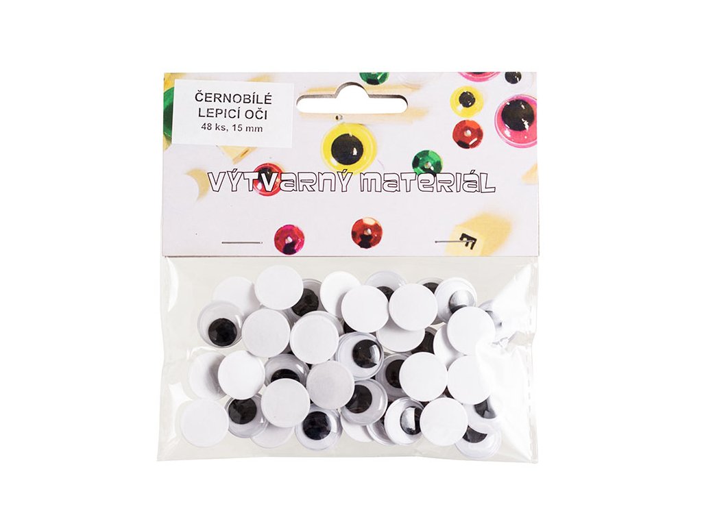 Černobílé oči lepicí s pohyblivou panenkou, 15 mm, 48 ks