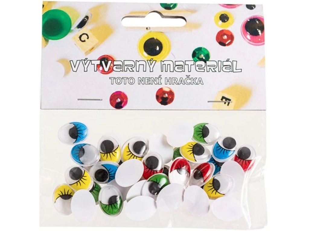 Oči s pohyblivou panenkou - oválné s řasami, 40 ks, 16 mm
