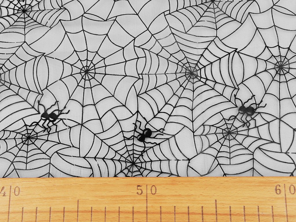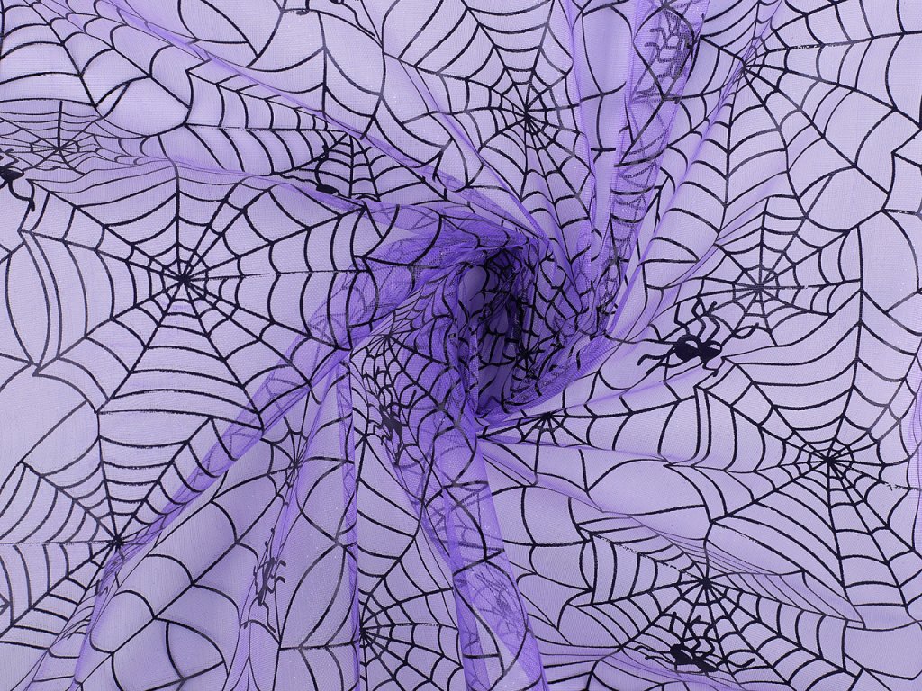 Organza s potiskem pavučiny je vhodná k dekoračním účelům. Využijete ji k aranžování, ozdobení halloweenského stolu, k výrobě karnevalových kostýmů nebo dekoračních postaviček (čarodějnic, ježibab, skřetů apod.).