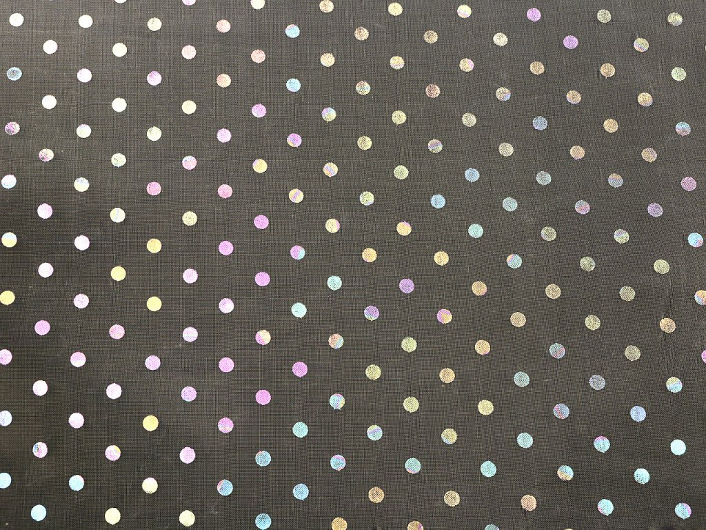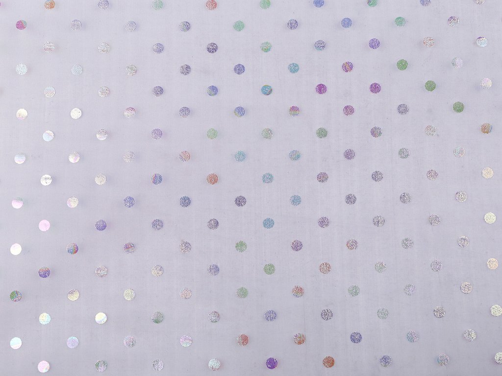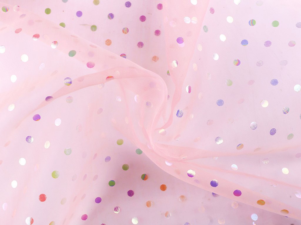 Jemnou organzu zdobí potisk puntíků s duhovým AB efektem. Využijete ji k šití karnevalových kostýmů, sukýnek a třeba i k výrobě andělů a různých postaviček.