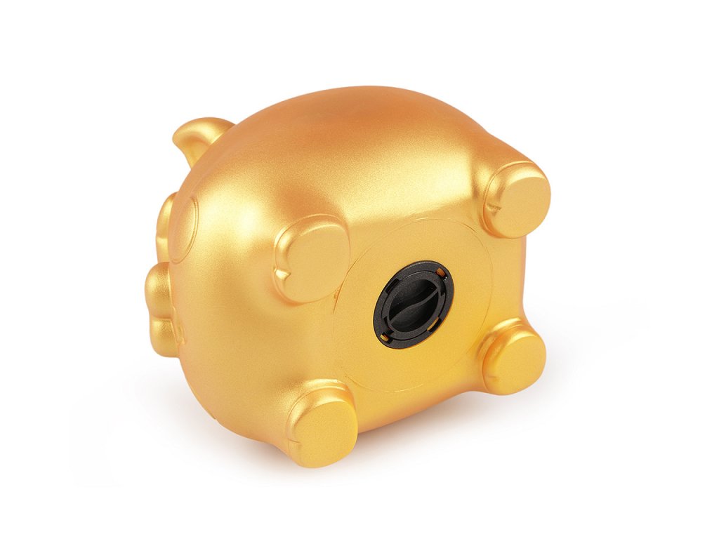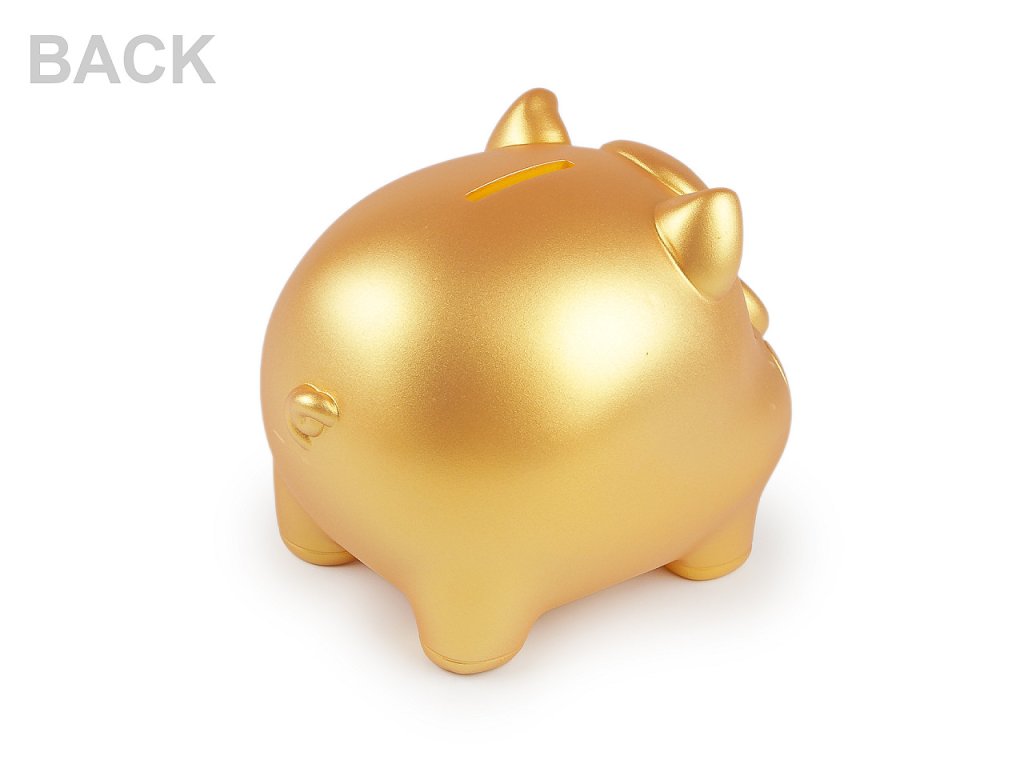 Pokladnička v designu zlatého prasátka je praktickou dekorací i zajímavým dárkem. Dá se použít na svatbě pro vybírání peněz na novomanžele nebo do ní můžete vložit finanční obnos a podarovat ji k narozeninám apod.