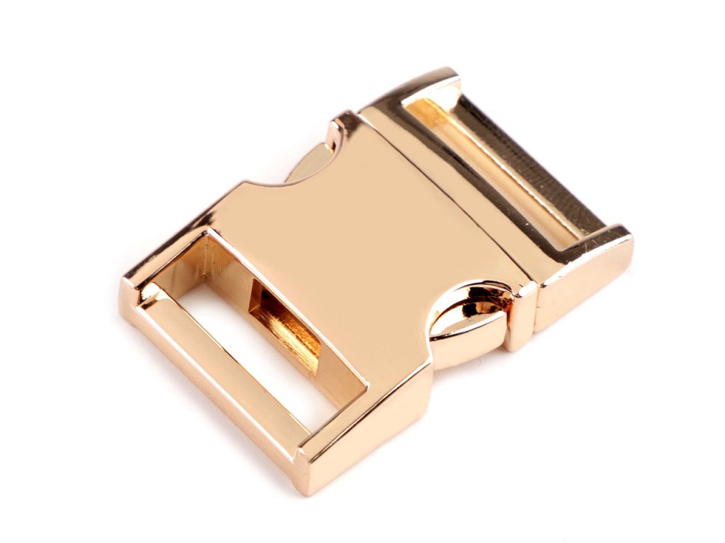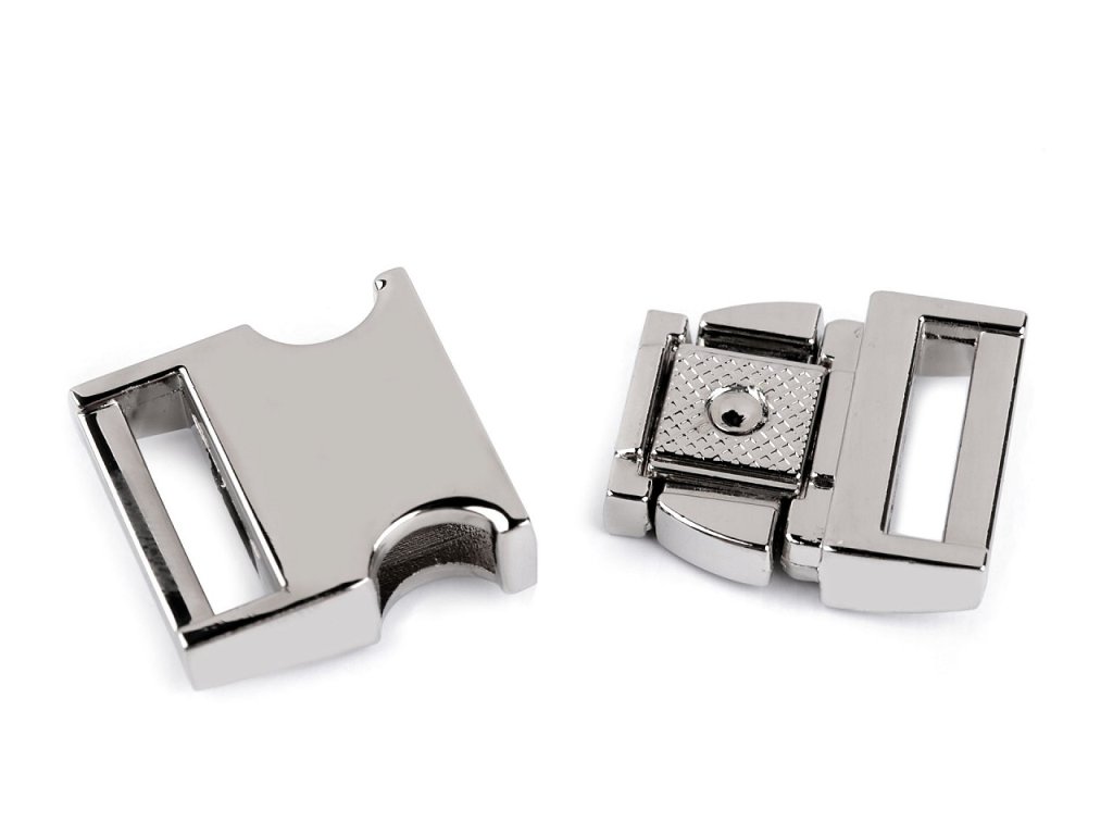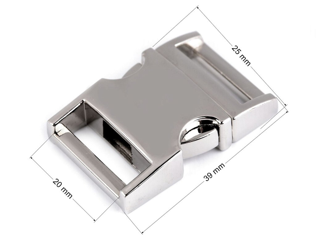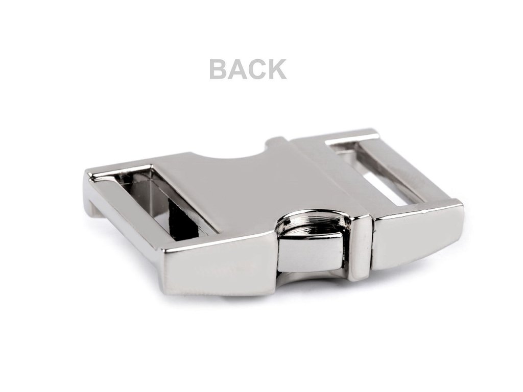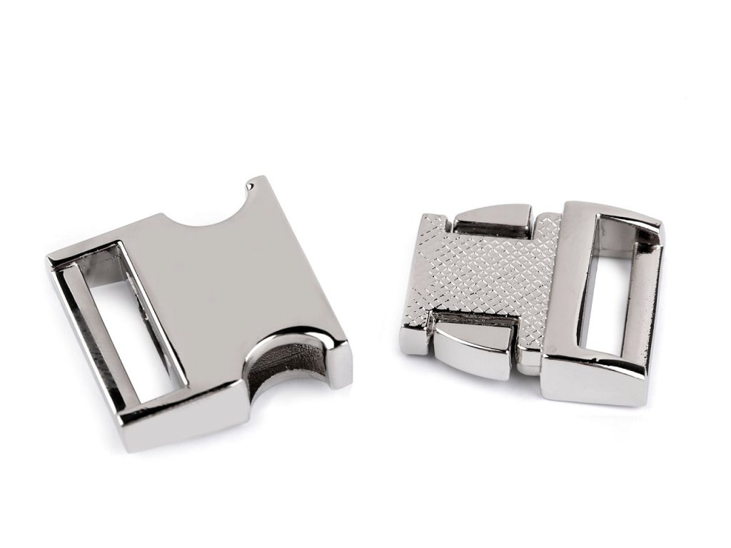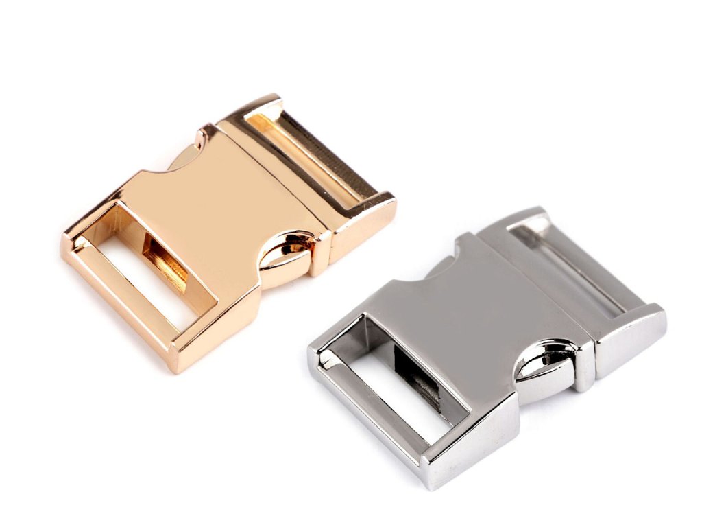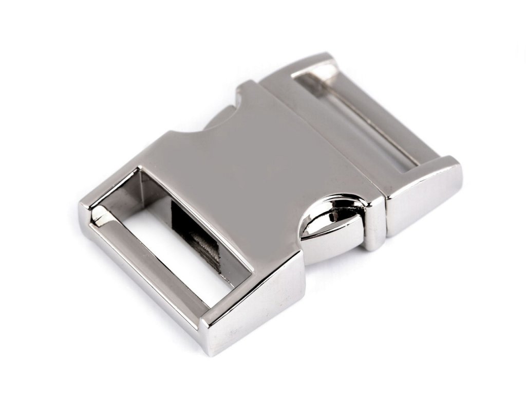 Celokovová spona se pyšní svou bytelností a vysokým zrcadlovým leskem. Skládá se ze dvou částí, které do sebe zacvaknete. Využijete ji jako elegantní zapínání lacláčů, ale také na výrobu ledvinkových opasků, brašen, batohů apod.