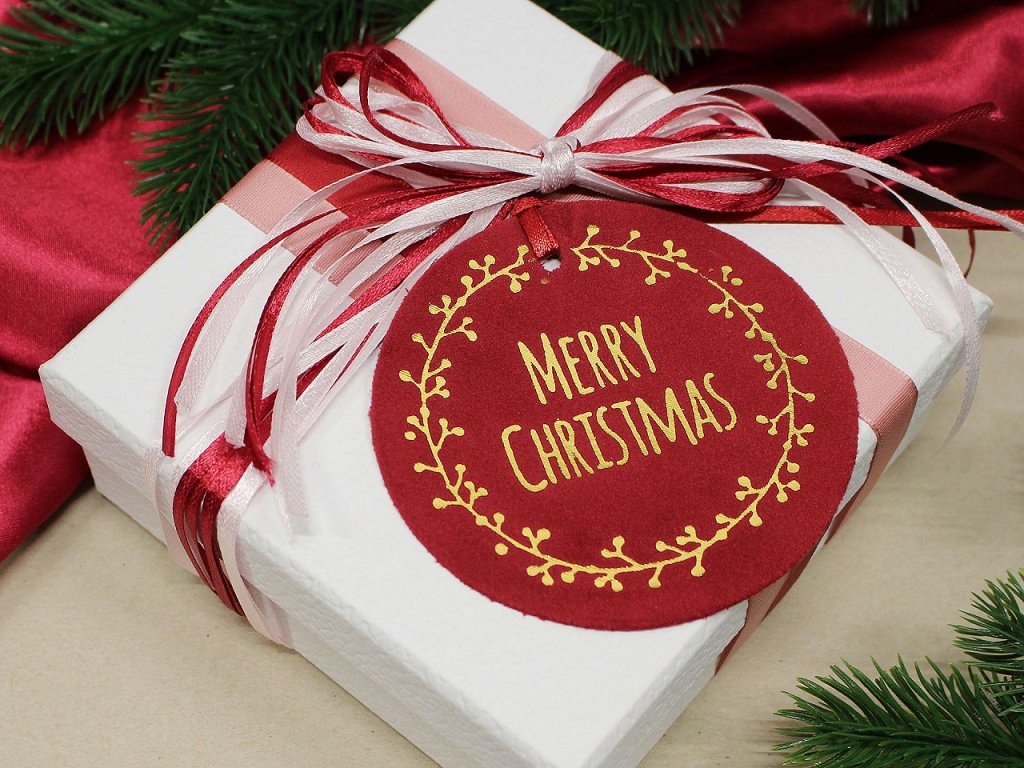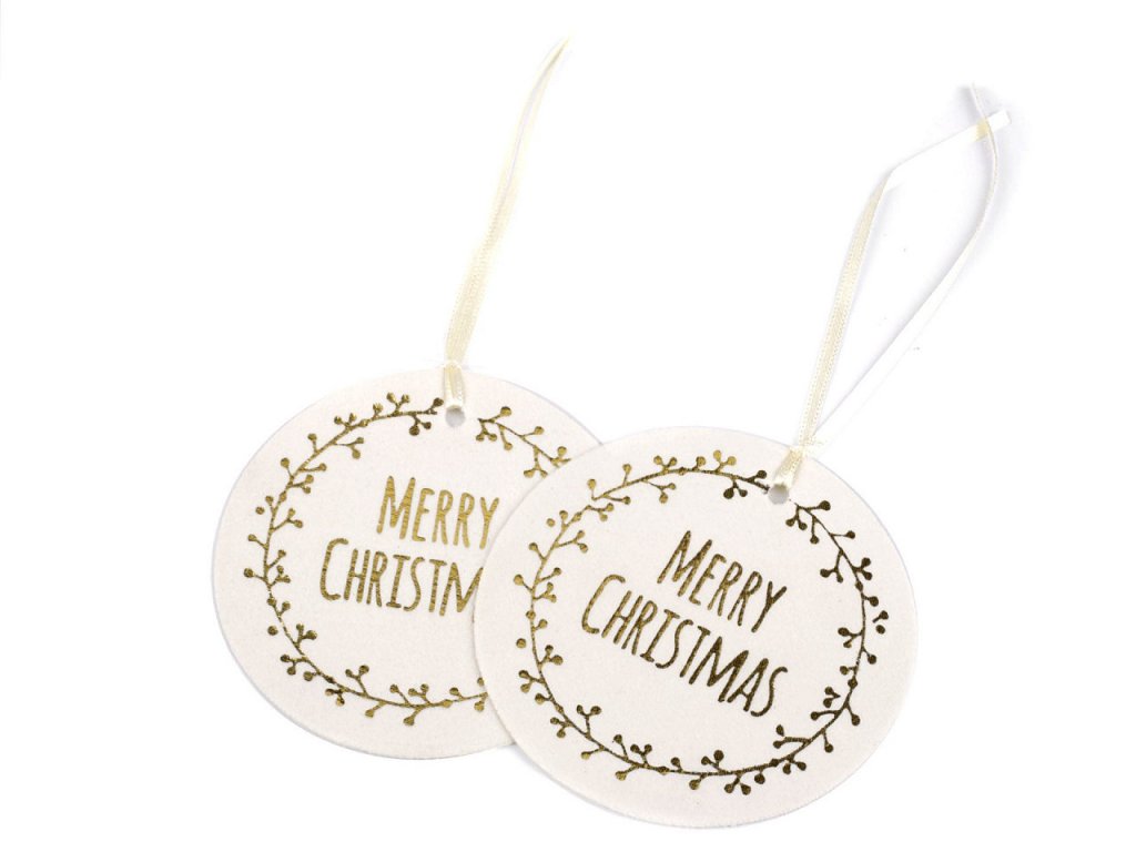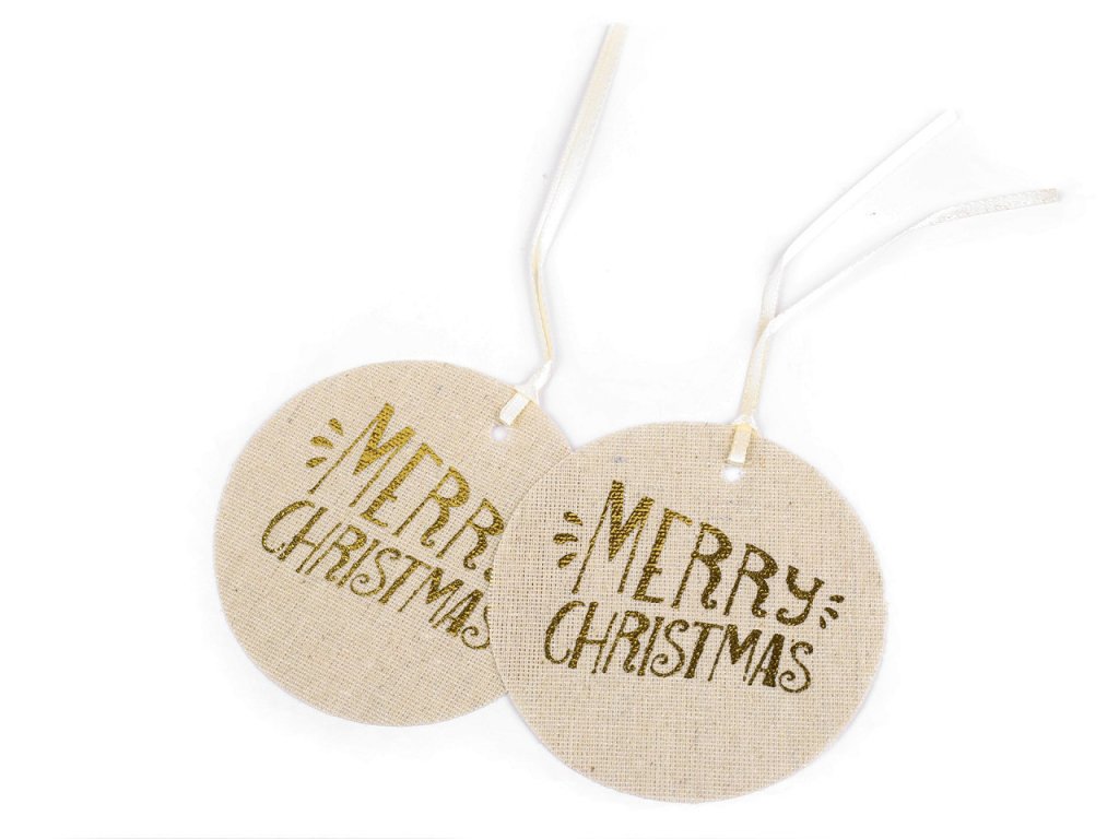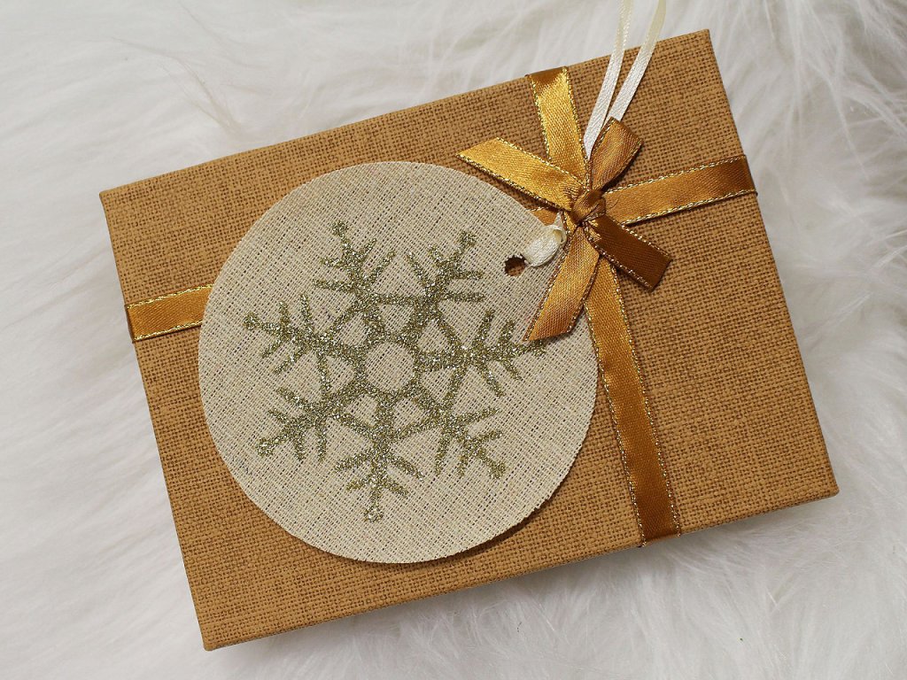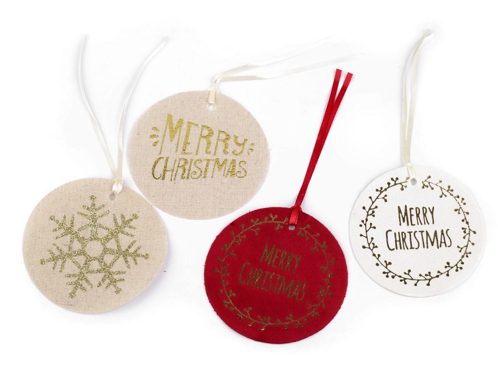Textilní visačka s vánočním motivem je skvělá na ozdobení dárku. Potisk je metalický a jednostranný. Nahoře je připevněná saténová šňůrka k přivázání. Dárek s visačkou bude působit luxusně, visačku můžete zavěsit i na láhev vína, dárkovou tašku, krabici apod.