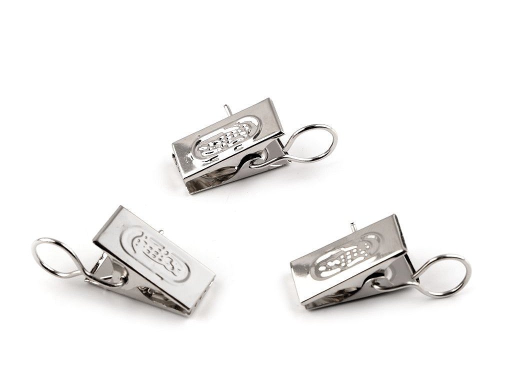 Žabky využijete na uchycení záclon. Jsou lesklé a mají pevné očko. [Očko není úplně uzavřené, dá se navléknout na kovové lanko nebo do něj můžete provléknout plastový kroužek na záclony 080665 a 780168.]