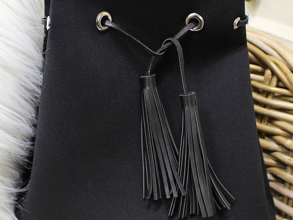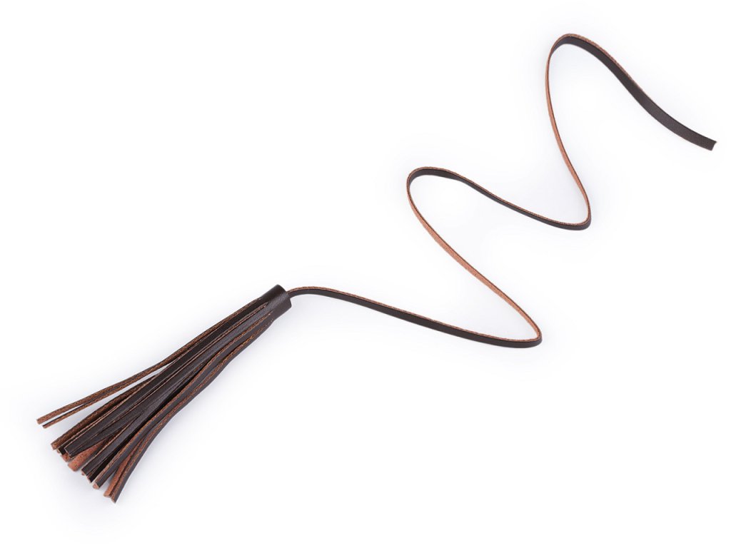 Přívěsek v podobě třásní je vyrobený z eko kůže. Díky dlouhé šňůrce jej můžete přivázat.