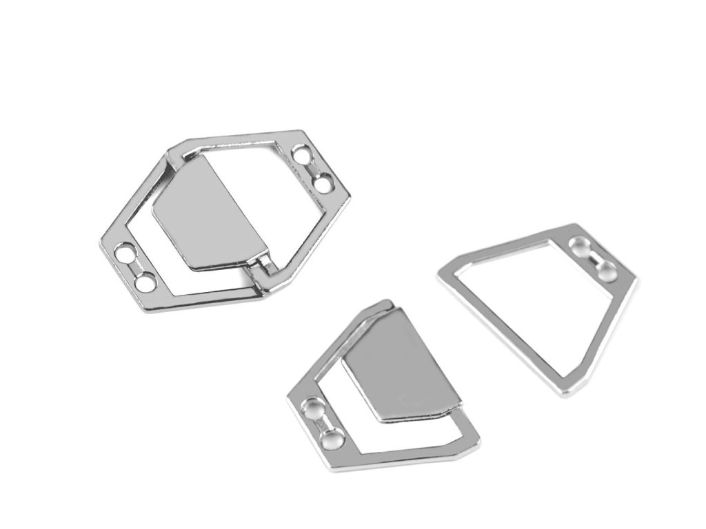 Minimalistické kovové zapínání se skládá ze dvou částí, které do sebe zaháknete. Vynikne na oděvech i doplňcích. K materiálu se přišívá.