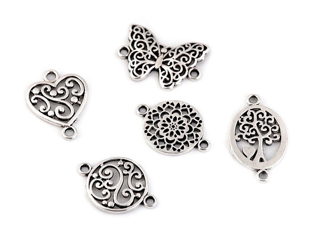 Ozdobný díl různých designů má dvě očka, která slouží k přichycení. Varianty č. 1 - 3 jsou lehce vypouklé a jednostranné. Varianty č. 4 - 5 lze použít i oboustranně.