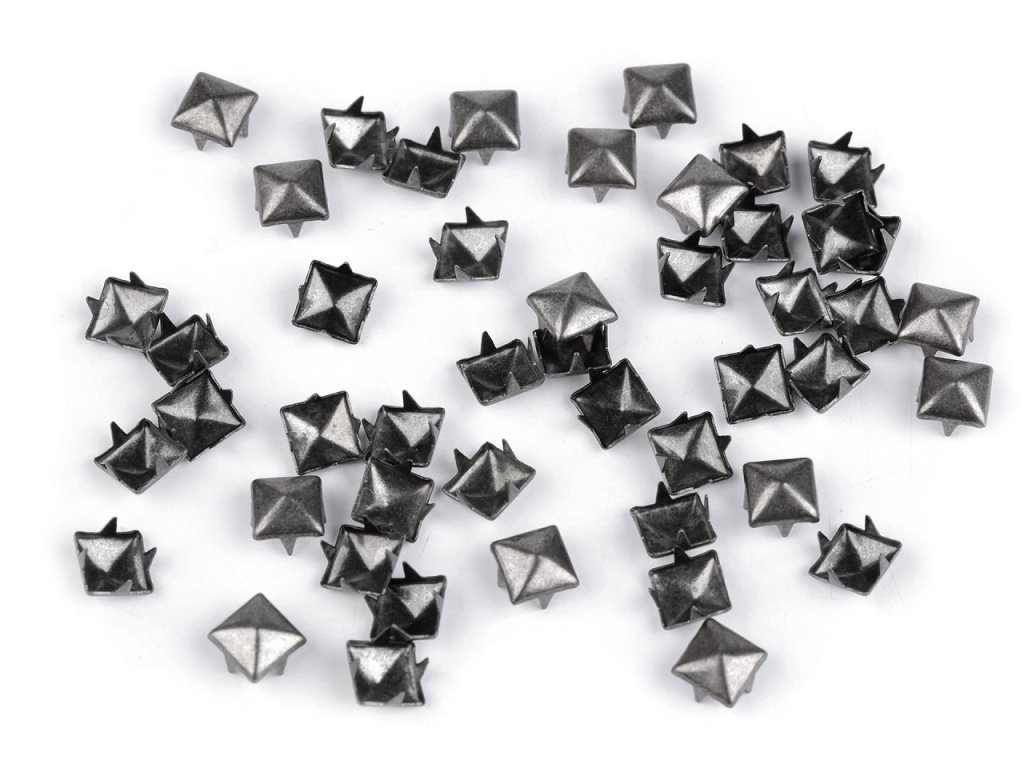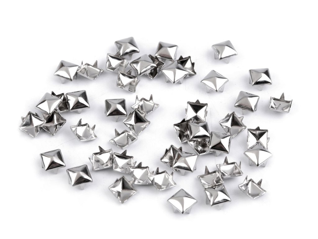 Kovové cvočky ve tvaru pyramidy jsou moderním doplňkem oblečení. Objevují se nejen na rockerském oblečení, ale můžete se s nimi setkat např. na kabelkách, obuvi, šatech, peněženkách, atd. [Jsou vyrobené z kvalitní nerezové oceli.] [Cvočky jsou opatřené nožičkami, které jdou ručně ohnout a jednoduše se tak připevní na látku.] Oděv či módní doplněk s těmito ozdobami lze prát.