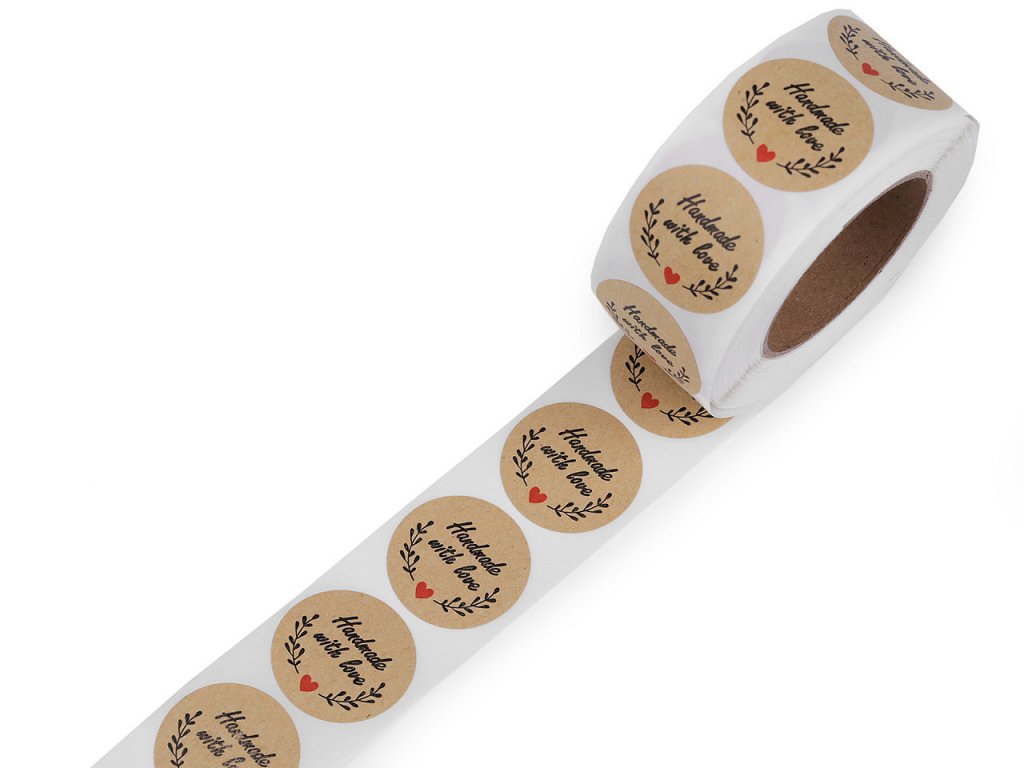 Papírové samolepky Handmade with love, thank you Ø25 mm