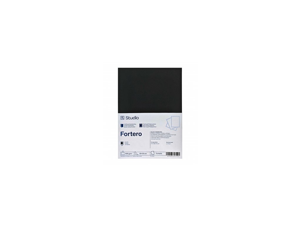 Černá vysokogramážová lepenka / karton Fortero pro multifunkční použití - podklad pro malbu, kresbu, mixed media techniky, hobby a kreativní účely nebo pro rámování a paspartování. Má poměrně hladký povrch a výrazný černý odstín. Je pevný a odolný. Vyrábí se bez kyselin a ze 75% recyklovaných materiálů.