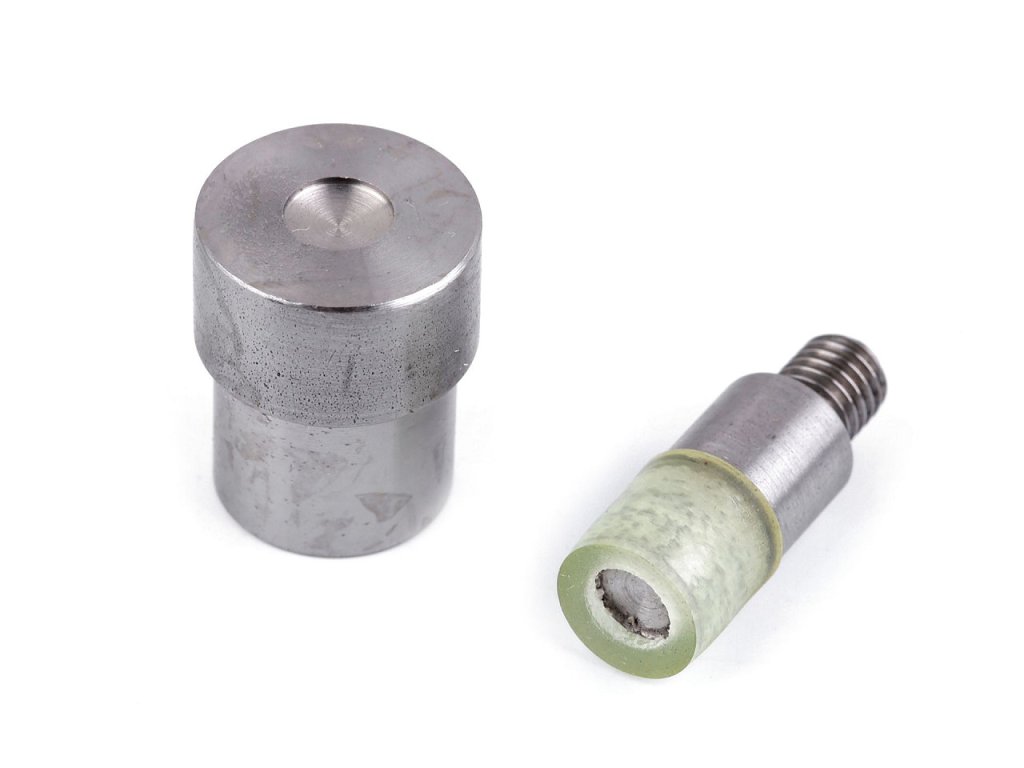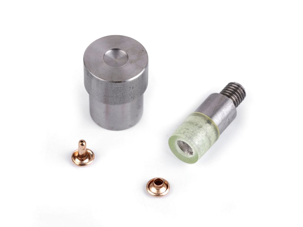 Piston tvoří nedílnou součást lisu. S jeho pomocí nýtujeme duté nýty Ø8 mm. Piston se skládá ze dvou částí. Větší část pistonu, do které se vkládá nýt, umístíme v dolní části lisu. Druhou část zašroubujeme do lisu a vložíme vhodný komponent k nýtování. Vaše kabelky, boty i oblečení se během chvilky změní v originální kousky.