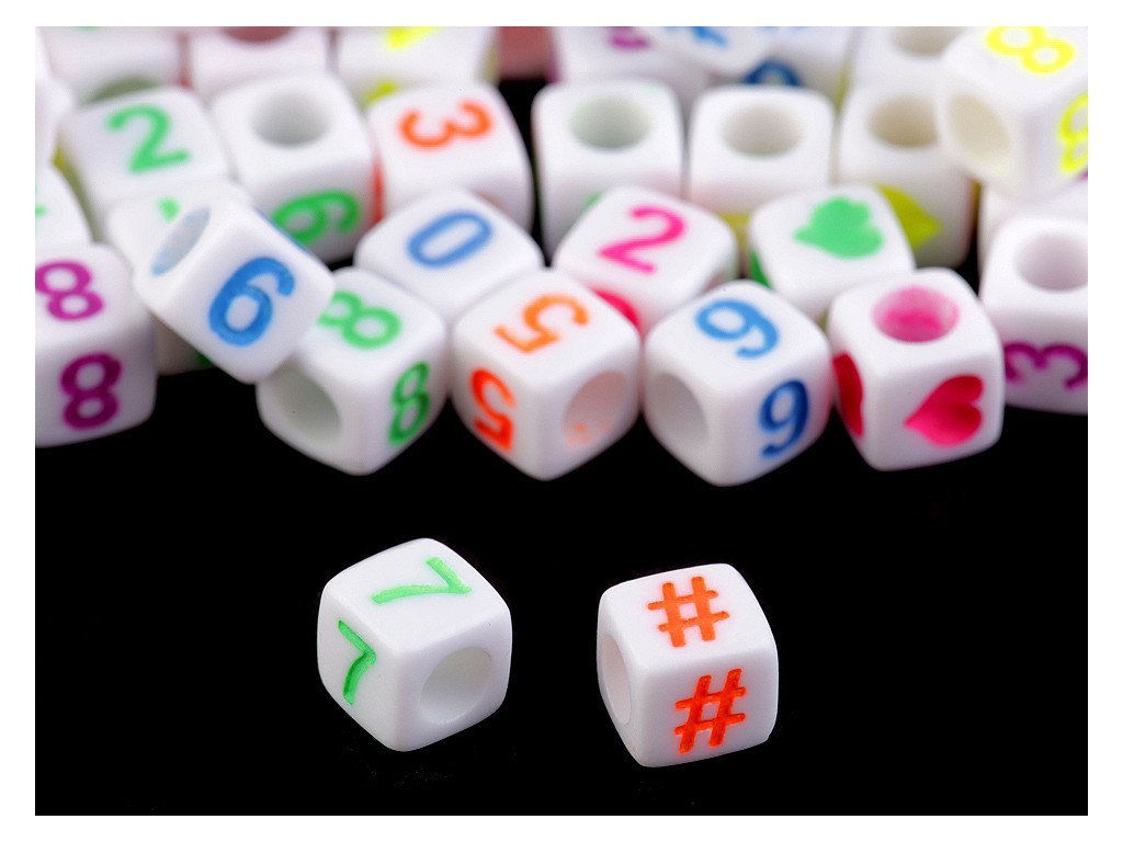 Plastové korálky s písmeny a čísly kostka 6 mm