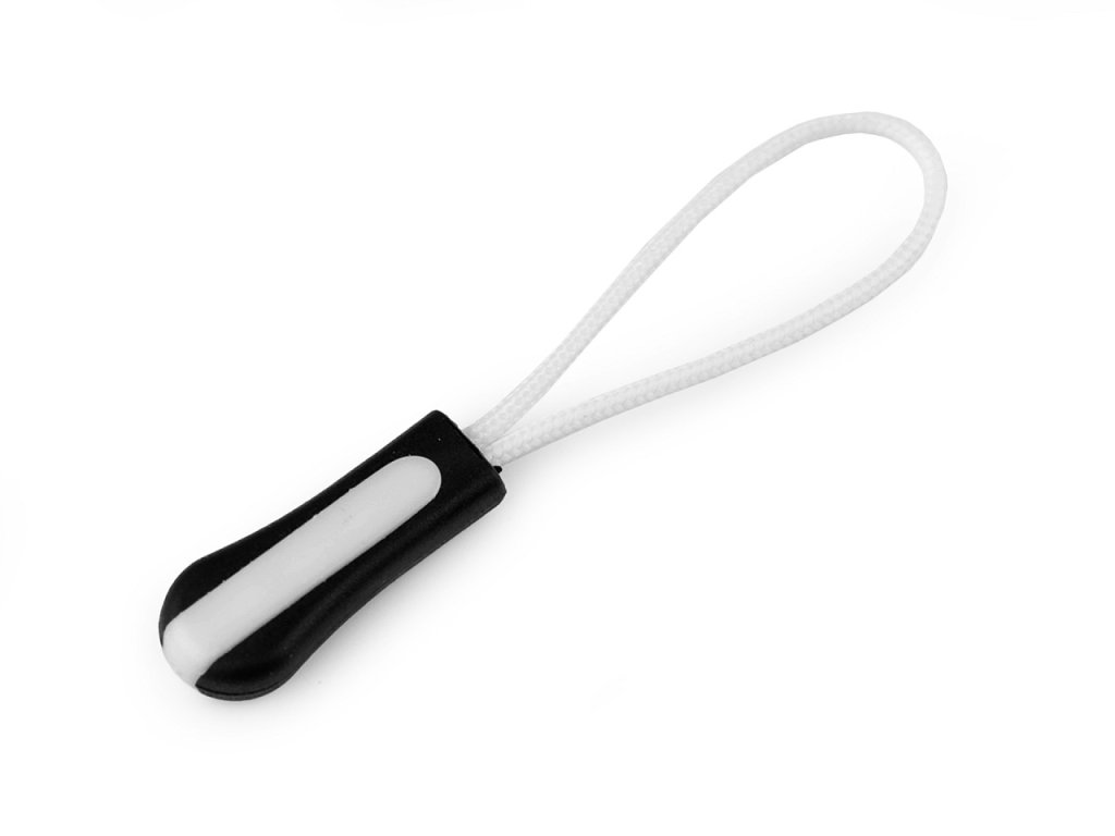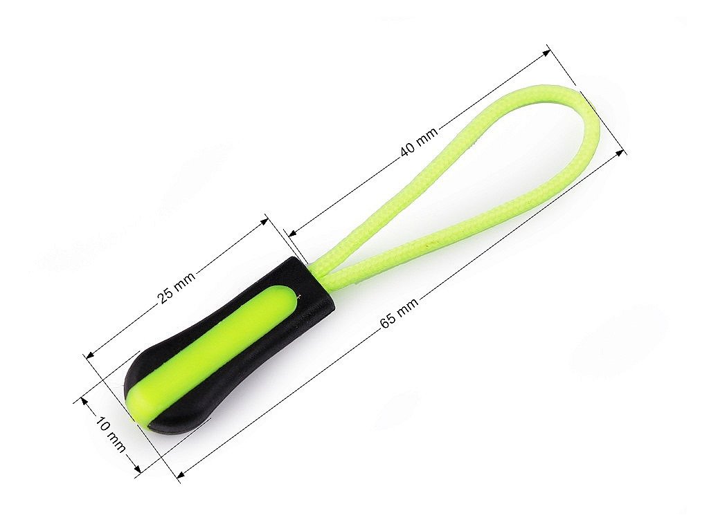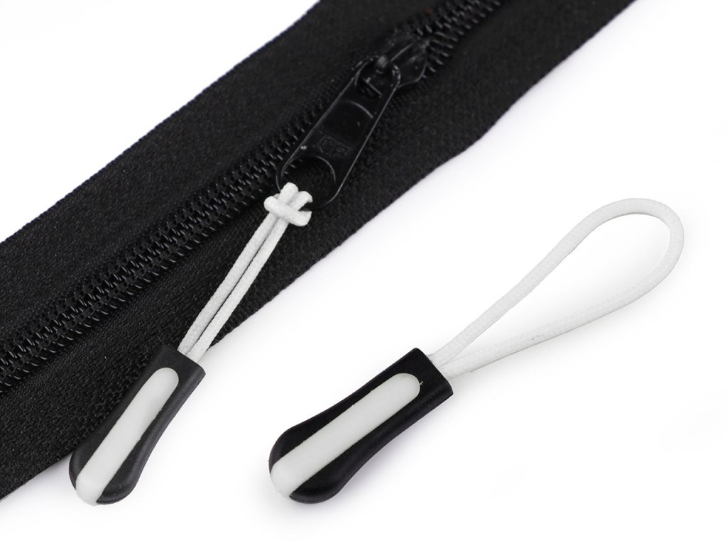 Poutko slouží k lepšímu uchycení jezdce na zipu. Skládá se z plastového táhla v podobě kapky a polyesterové šňůrky. Můžete ho pověsit také na klíče, mobil, tašku apod.