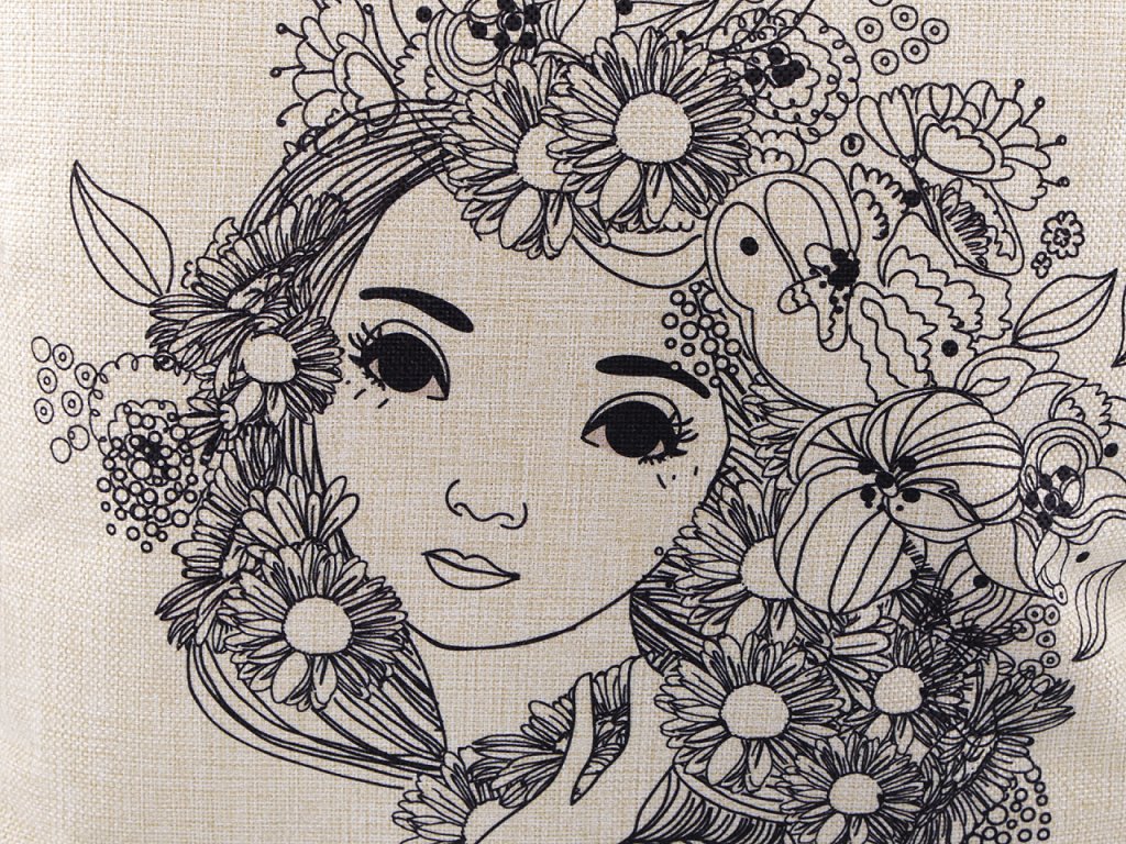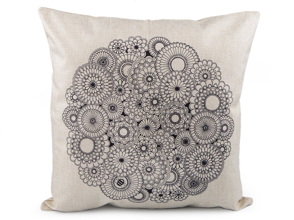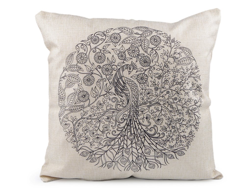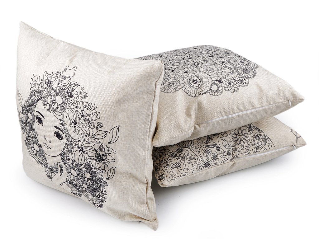 Polštář má lněný vzhled, zapíná se na zip. Předtištěný motiv je pouze na jedné straně.