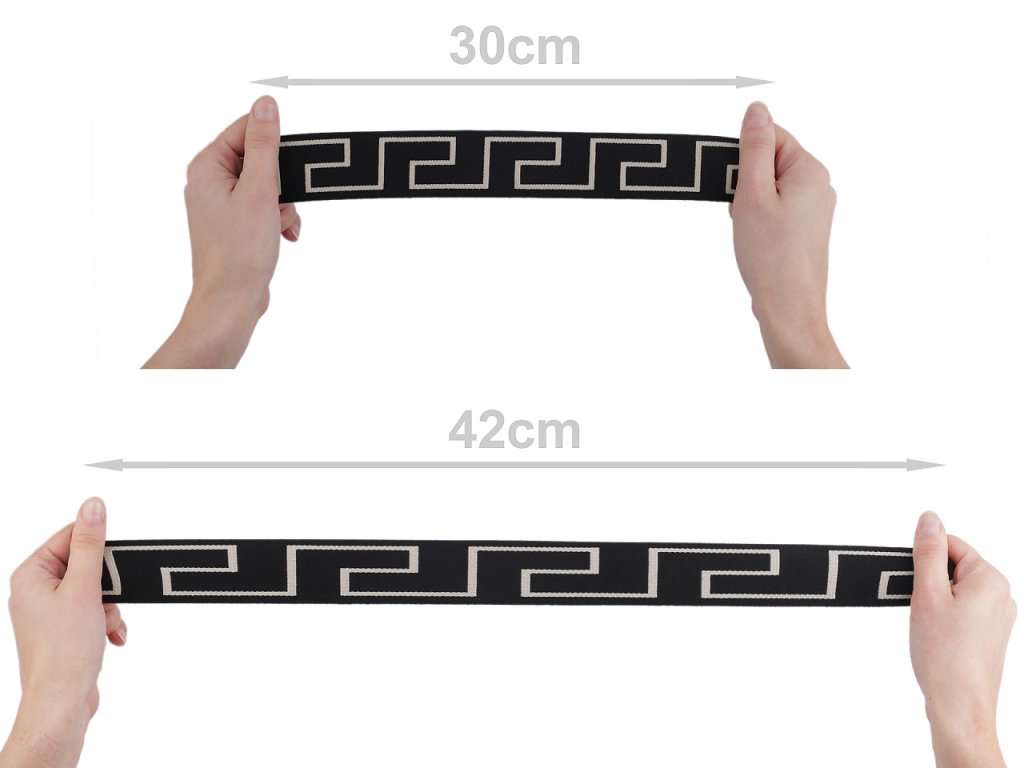 Vzorovaná pruženka, vyrobená z příjemného měkkého materiálu, je vhodná do pasů a k lemování tepláků, šatů, legín, mikin, sukní i na výrobu spodního prádla.