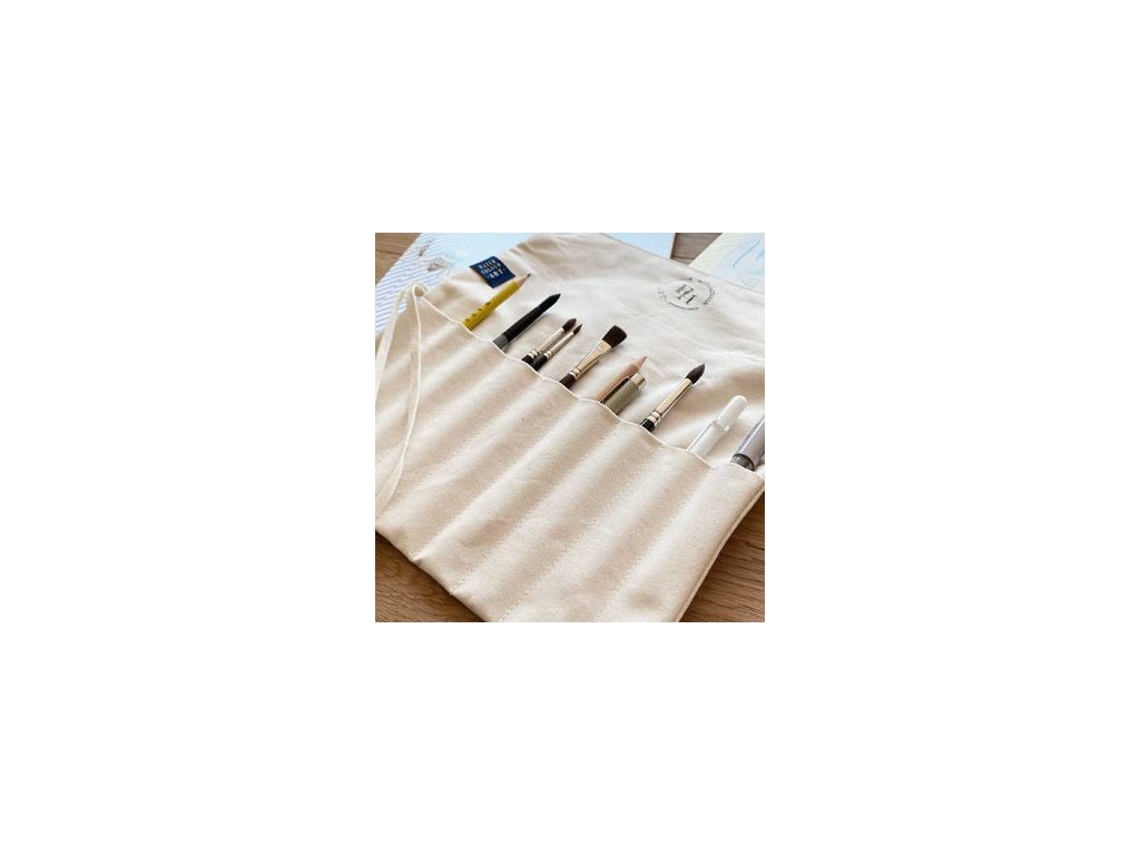 Organizér na akvarelové a štětce nebo jiné umělecké pomůcky, ušitý z pevného režného plátna. Jednoduchý a čistý design, který jsem sama navrhla a vyzkoušela na svých pomůckách. Obal, který se nemusíte stydět vyndat v kavárně na stůl, ani velký ani malý, prostě tak akorát na cesty.