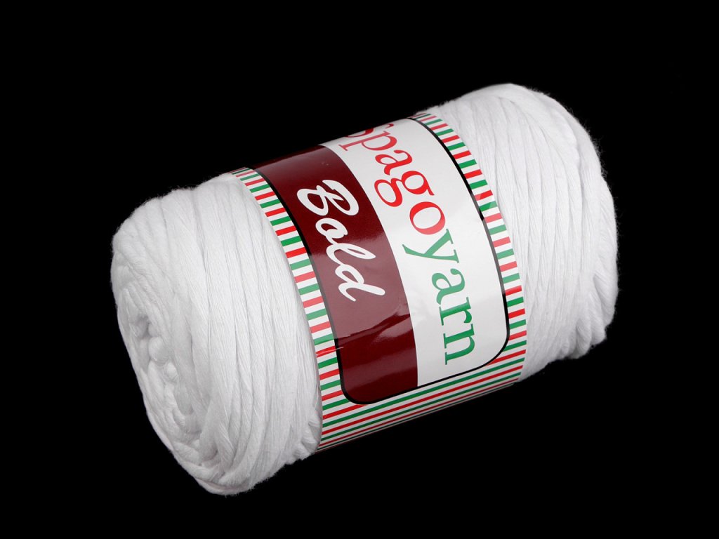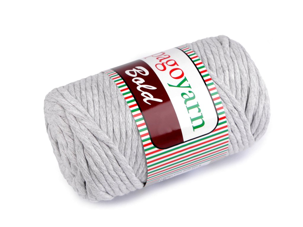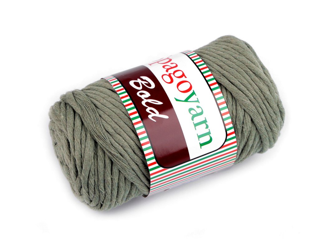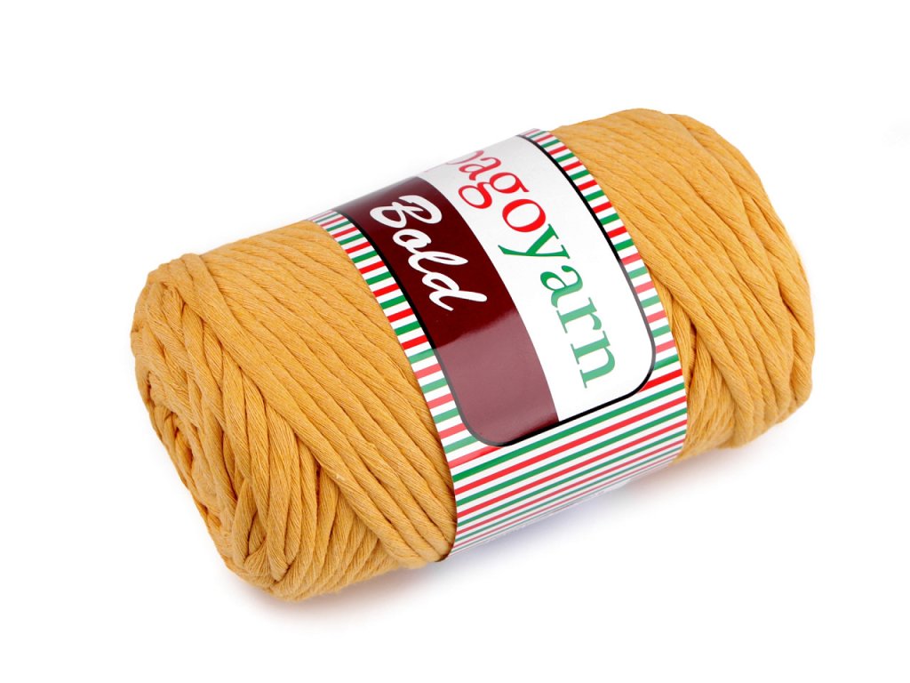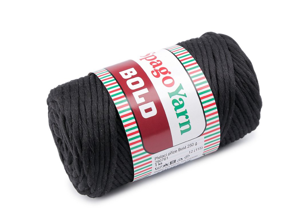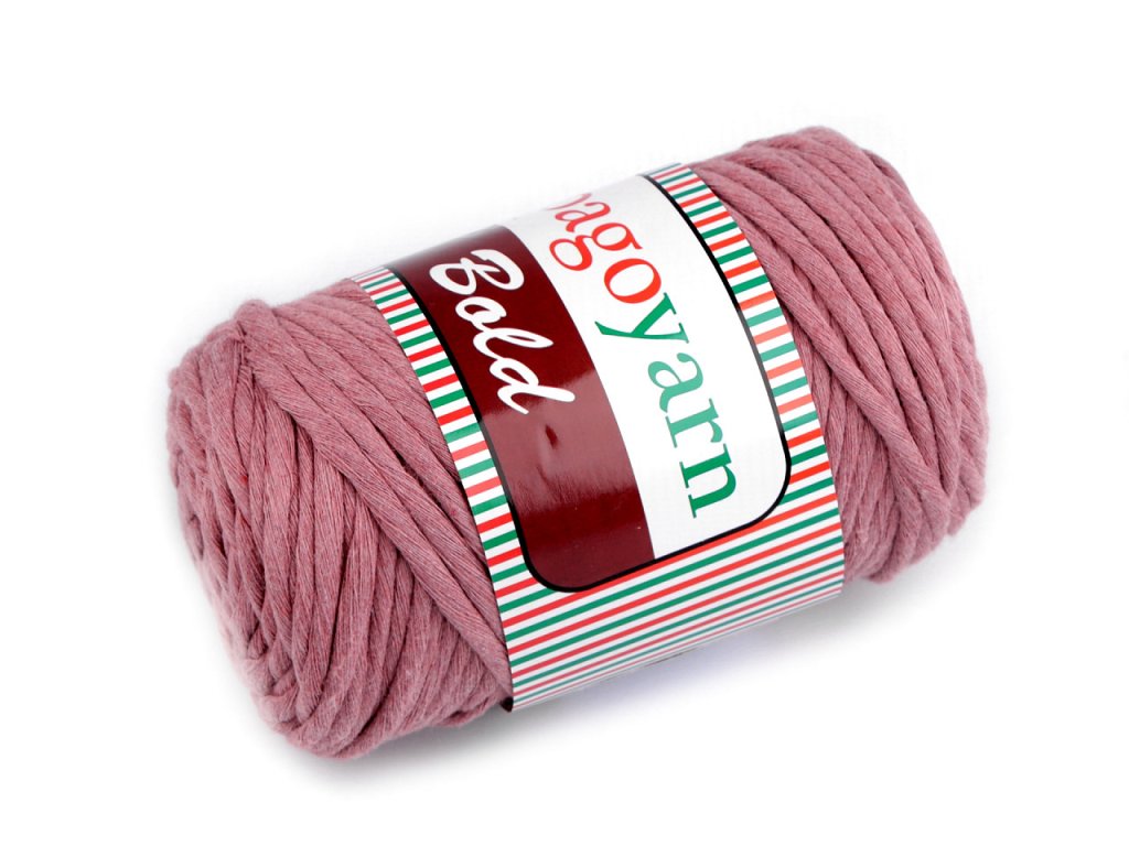 Bavlněná pletací příze Spagoyarn Bold je volně stočená špagátová příze, kterou využijete na pletení a háčkování koberečků, tašek, kabelek a jiných různých doplňků. Díky svému provedení je ideální na techniku macramé (drhání). Skvěle se s ní pracuje a dá se hezky rozčesat. Můžete z ní vyrobit různé interiérové doplňky nebo závěsné dekorace.