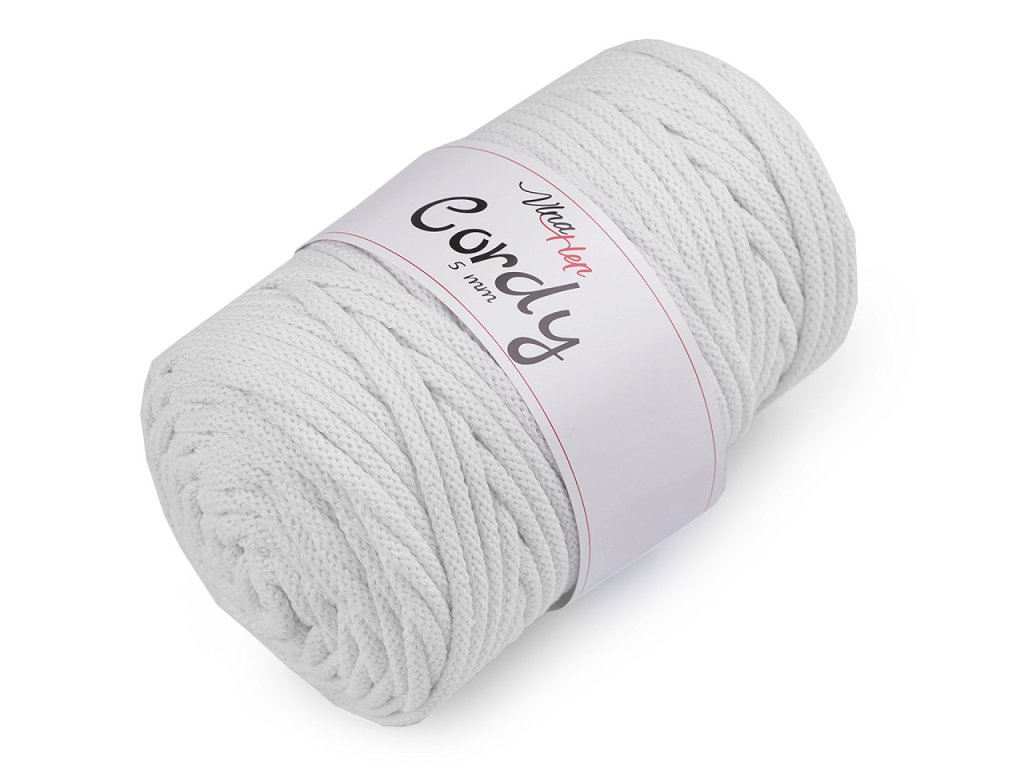 Provázkovou přízi Cordy tvoří tunýlek z bavlny, který je vyplněný polyesterovým vláknem. Je pevná a odolná, vhodná na pletení i háčkování. Využijete ji na výrobu pufů, košíků, koberečků, tašek, povlaků na polštáře, taburetů a jiných, převážně bytových, doplňků.