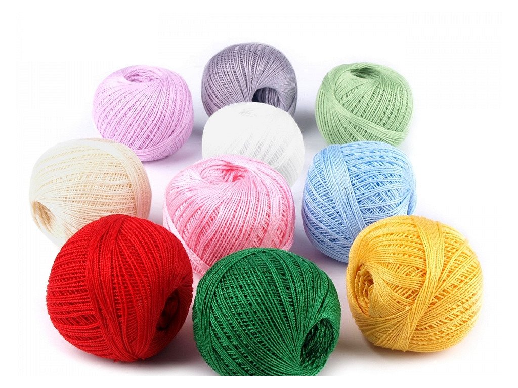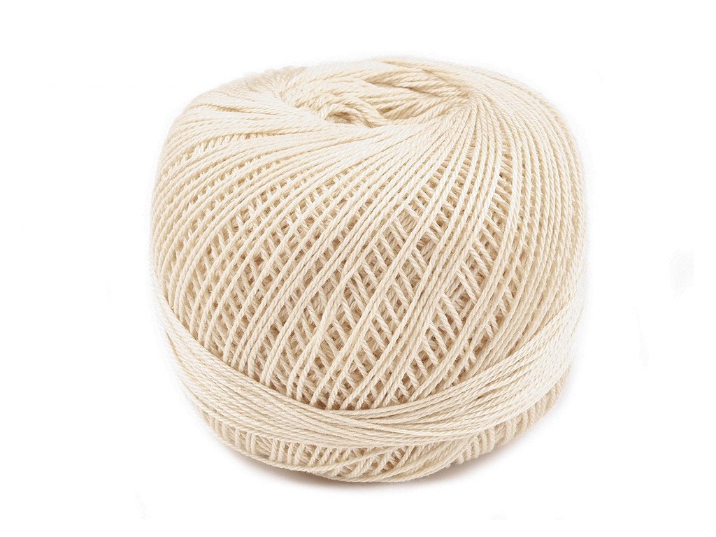Háčkovací/pletací příze, tex50x3, 10 klubek (30g-200m) v krabičce. Čísla 50x3 znamenají: 50tex jsou číslování váhová (rozhodující je váha - hmotnost určité délky nitě). Zde platí pravidlo: Čím vyšší je číslo, tím hrubší je příze. Číslo 3 znamená že nit se skládá ze 3 jednoduchých nití.