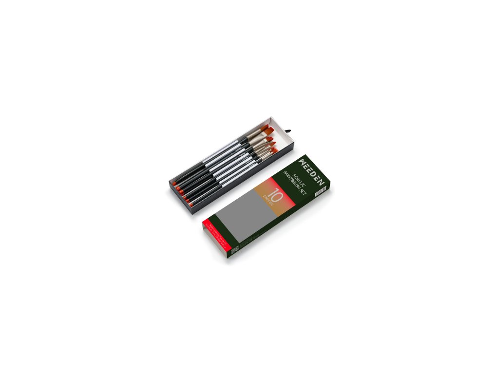 Sada deseti syntetických štětců různých tvarů a velikostí pro práci s akrylovými barvami. Sada obsahuje vějířové, ploché, tupovací a kulaté štětce. Štětce mají měkký syntetický vlas, který je vhodný pro jemné tahy. Vlasce jsou pevně připojené k rukojeti a nevypadávají. Sada je ideální pro malbu akrylovými, akvarelovými nebo olejovými barvami.