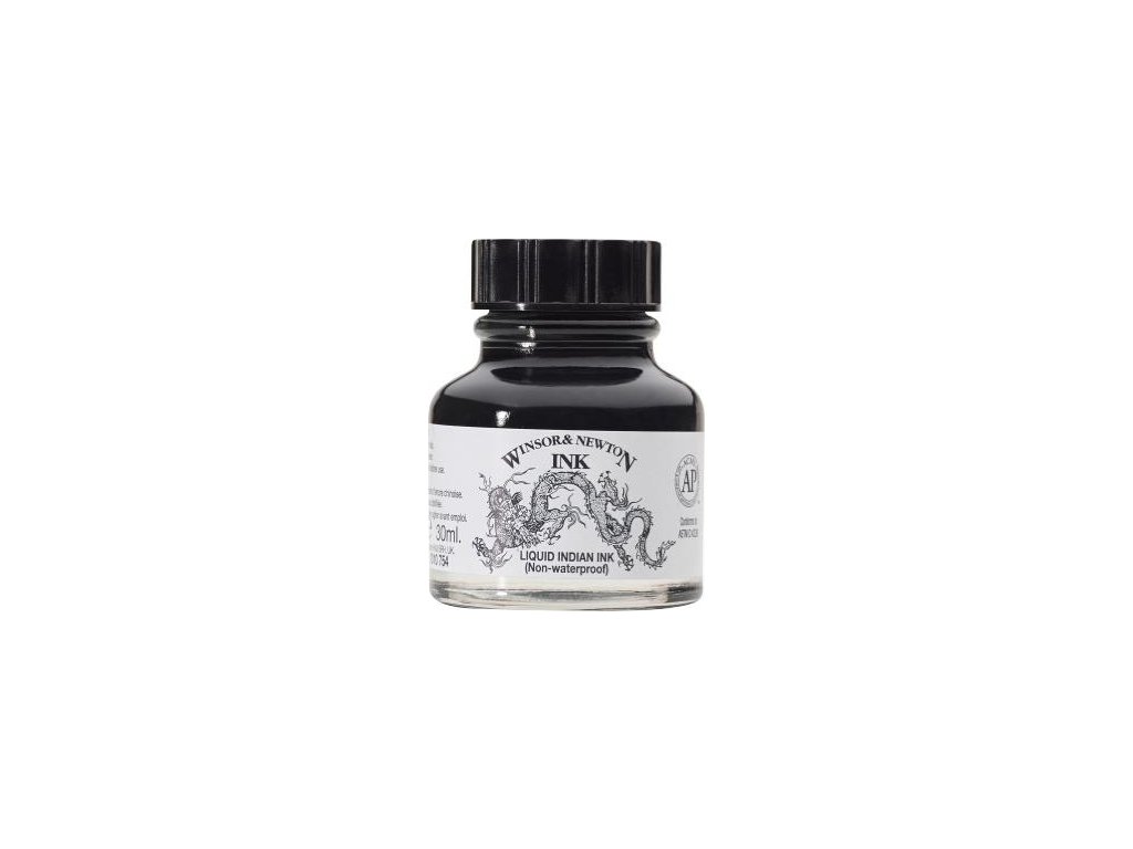 Rozmyvatelná indická tuš značky Winsor & Newton, vhodná pro psaní a kaligrafii. Jedná se o směs popela, vody a pojidla. Po zaschnutí lze opětovně rozetřít. Nanášíme pomocí pera nebo štětce.