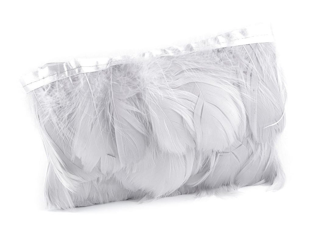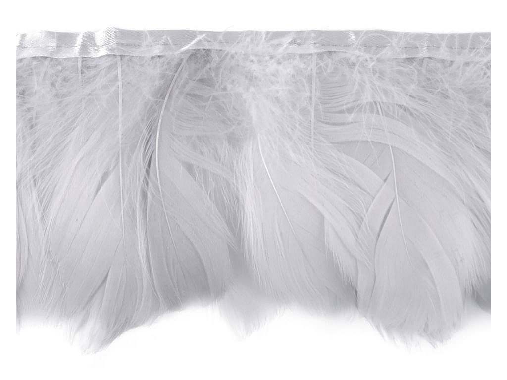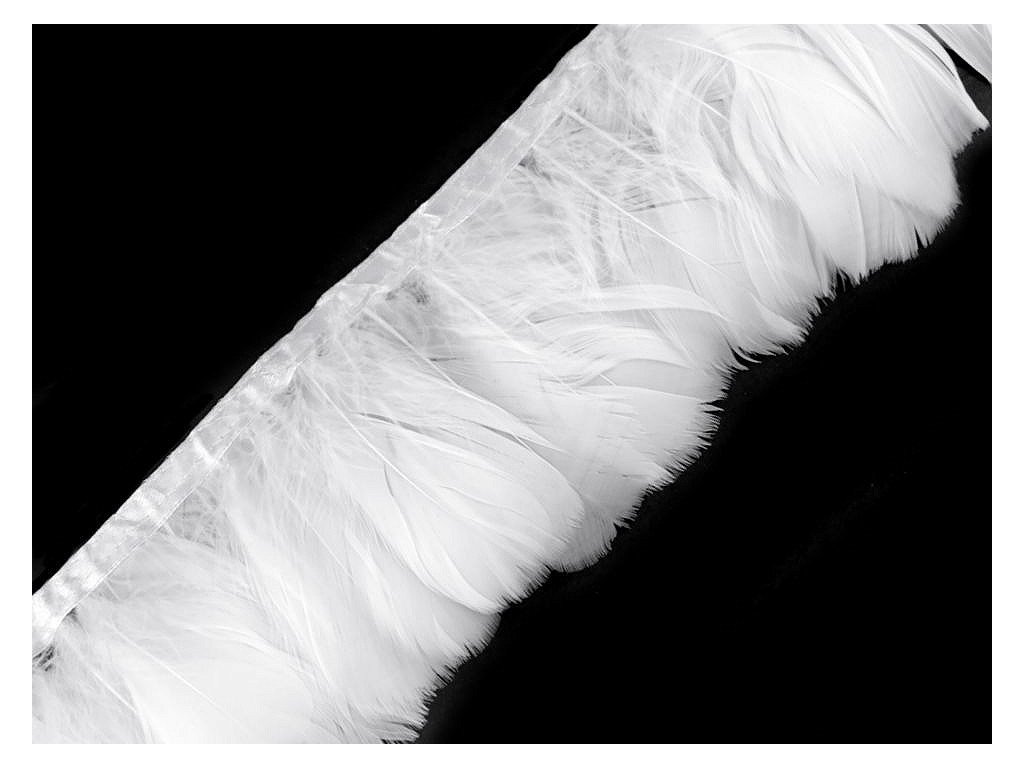 Prýmek z husího peří využijete k nevšednímu ozdobení oděvů či módních doplňků (např. klobouků), nebo jako zdobící prvek svatebních dekorací, květinových vazeb či různých aranžmá. Můžete jej využít také při šití karnevalových, tanečních nebo divadelních kostýmů. Peří je do saténového prýmku pevně prošito.