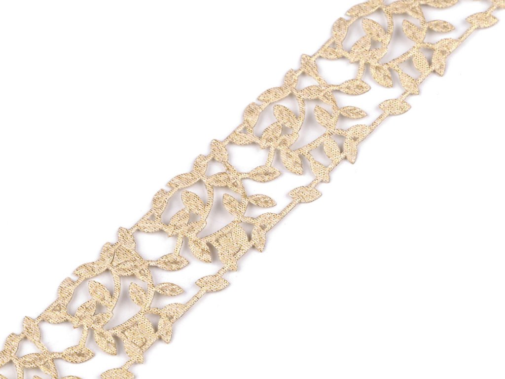 Prýmek šíře 30 mm vysekávaný vzor s lurexem