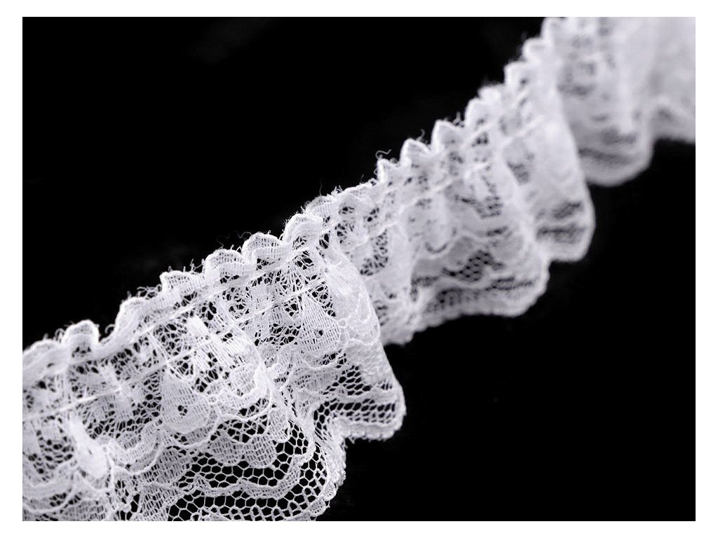 Použití: Volánek využijete na ozdobení podvazků, spodního prádla, šatů, sukní a halenek.