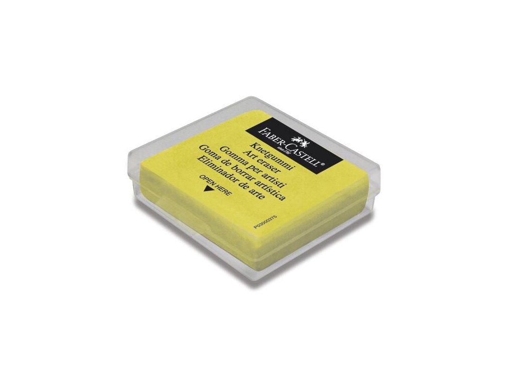 Umělecká stěrací pryž Faber-Castell je vhodná ke korekcím a zesvětlení výkresů zhotovených měkkou tužkou, uhlem nebo pastelem. Dodatečně slouží k čištění fotografických filmů. Po zašpinění pryže je třeba ji prohníst a opět zformovat. Dodáváme ji v plastovém pouzdře.