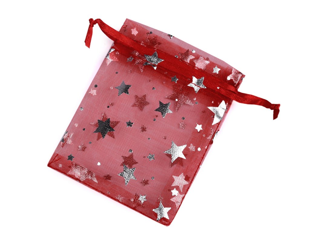 Dárkový pytlíček je vyrobený z organzy a zdobí ho lesklý potisk hvězd. Snadno se uzavírá pomocí dvou stahovacích šňůrek.