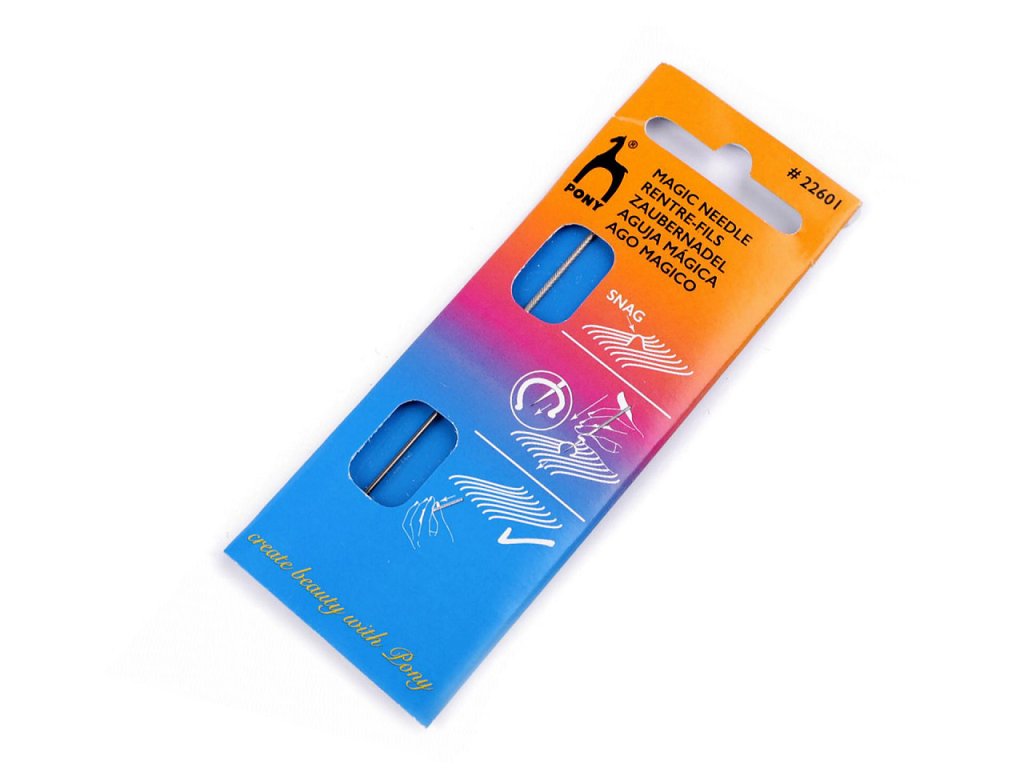Provlékací jehlu využijete na provlečení zatržené či vytáhnuté nitě. V horní polovině je zdrsněná, díky čemuž se do ní vytažená nit zachytí a jednoduše protáhne do rubové strany oděvu. Jehla nemá očko.