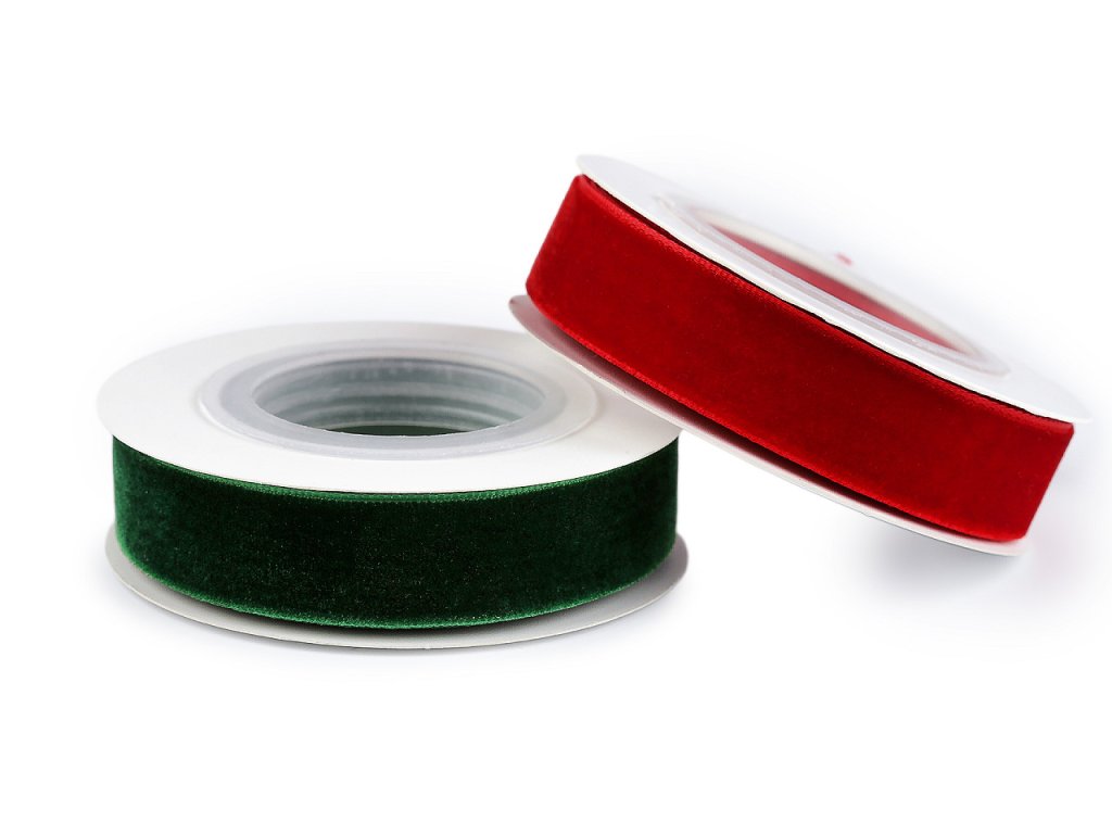 Sametová stuha na cívce ve vánočních barvách šíře 15 mm, návin 2,7 m