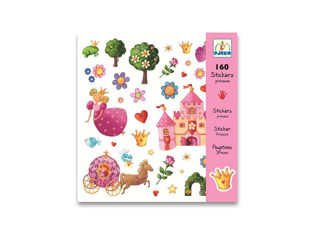 Sada samolepek s motivem princezny a pohádkového království. Balení obsahuje 4 archy (vždy 2 jsou stejné) se 160 samolepkami v kvalitních deskách. Rozměry balení 22 x 23 cm.